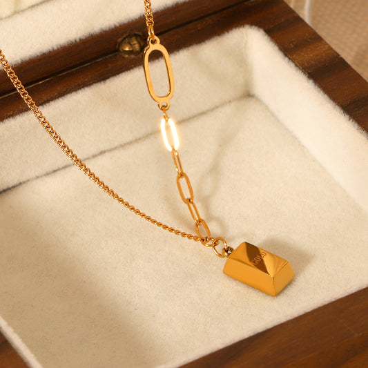 18K Gold Geometric Stainless Steel Inlaid Zircon Pendant Necklace Female Niche Design Titanium Steel Collar Chain