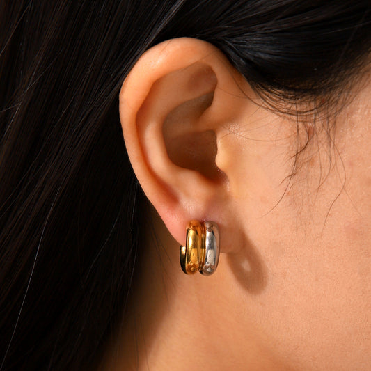 18K Gold Double-layer Stainless Steel Earrings INS Style Color Blocked Titanium Steel Earrings for Women's Fashion, Simple and Non Fading Earrings