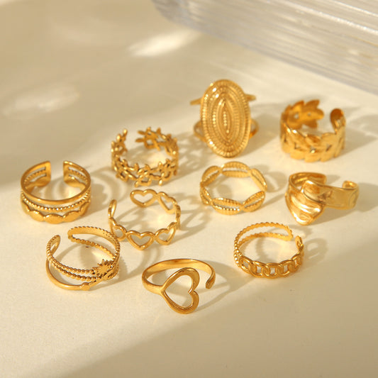18K Gold Heart Stainless Steel Ring Female Open Ring Niche High-end Titanium Steel Ring Does Not Fade