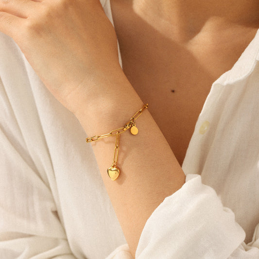 18K Gold Stainless Steel Cross Chain Heart Pendant Titanium Steel Bracelet Light Luxury Versatile Jewelry for Instagram
