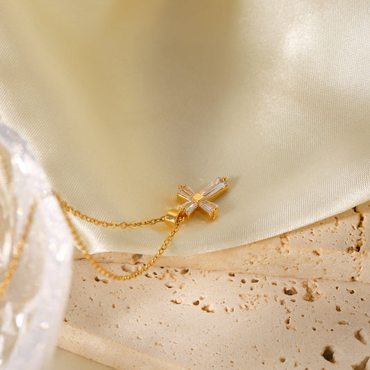 18K gold stainless steel cross studded zircon pendant necklace female non-fading jewelry ins titanium steel necklace