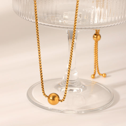 18K gold stainless steel box chain steel ball pendant necklace ins style niche design pull-style clavicle chain
