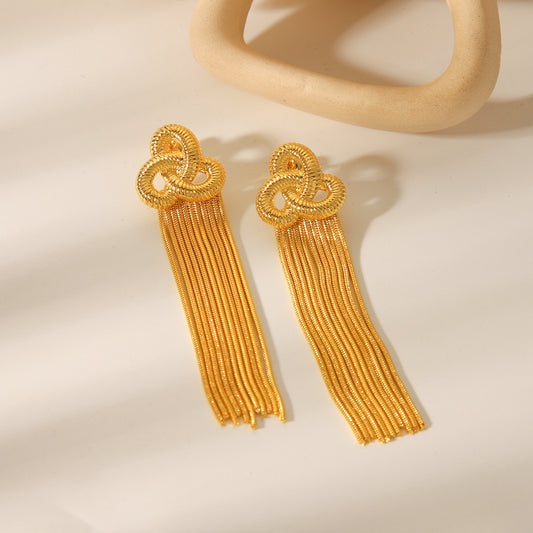 18k Gold Stainless Steel Chinese Knot Earrings with Tassel, Fashionable and Elegant Titanium Steel Earrings for Women