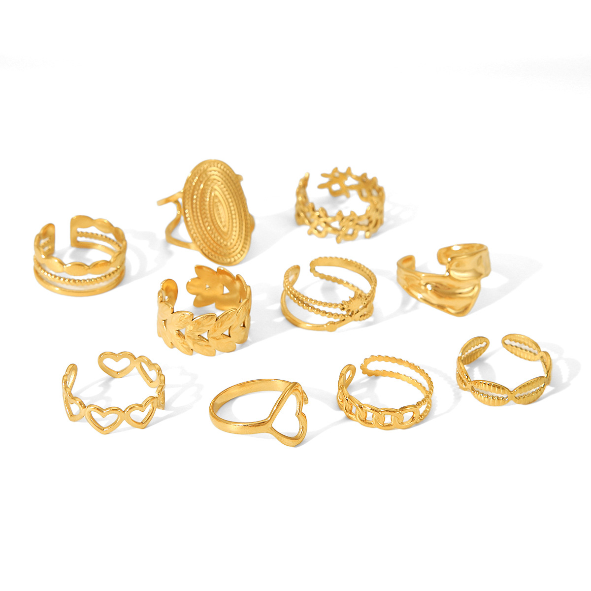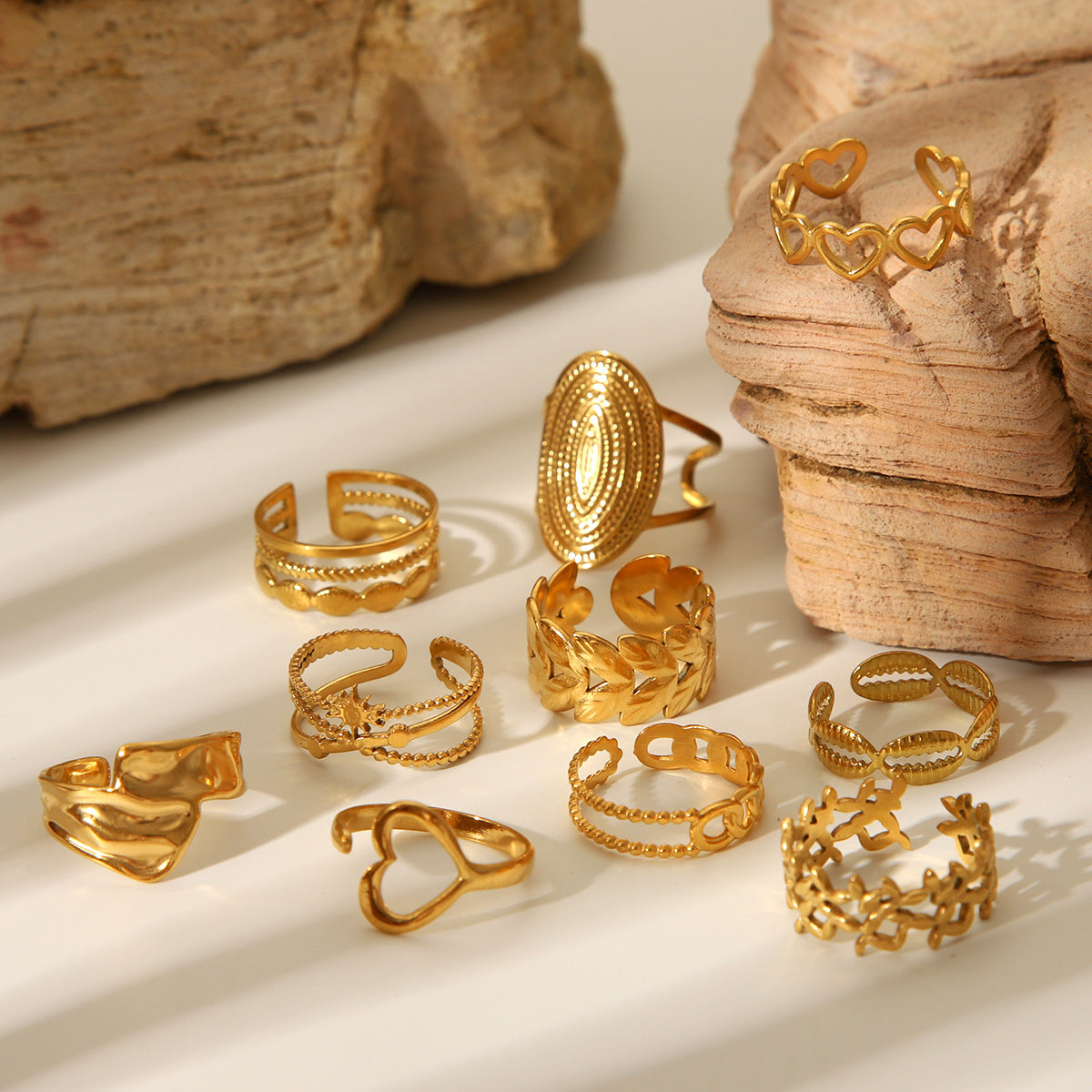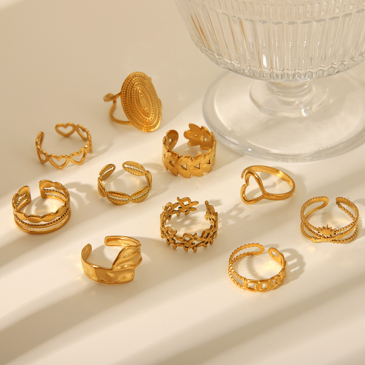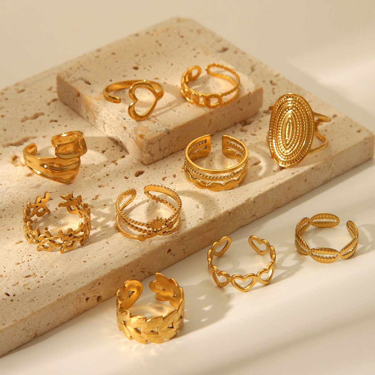 18K Gold Heart Stainless Steel Ring Female Open Ring Niche High-end Titanium Steel Ring Does Not Fade