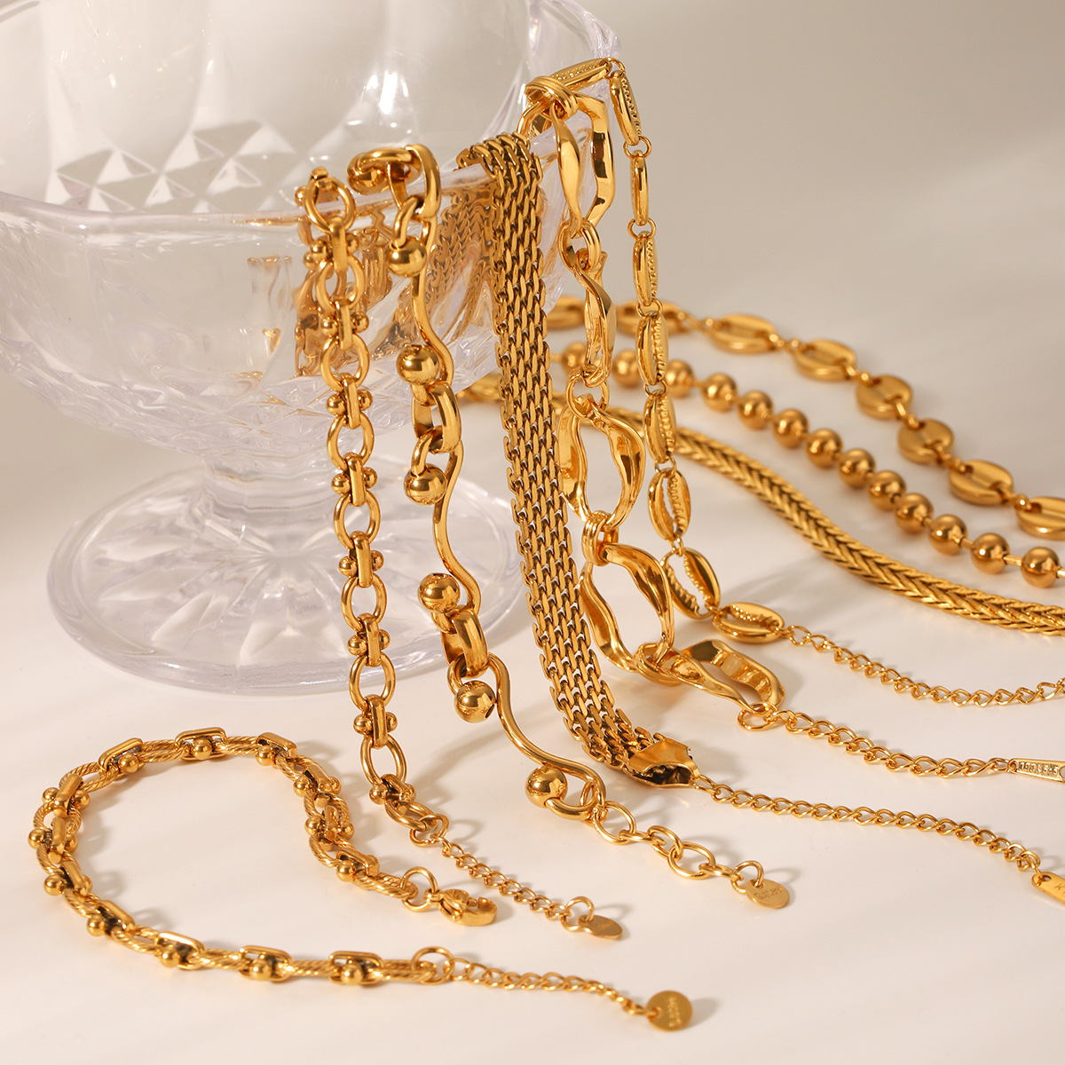 18K gold-plated stainless steel bracelet for women, INS style, fashionable round bead chain, handmade jewelry