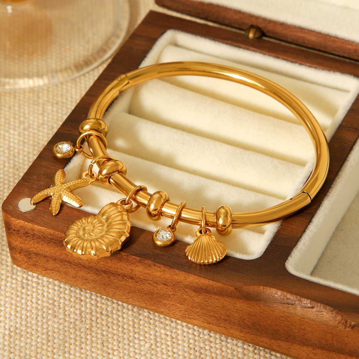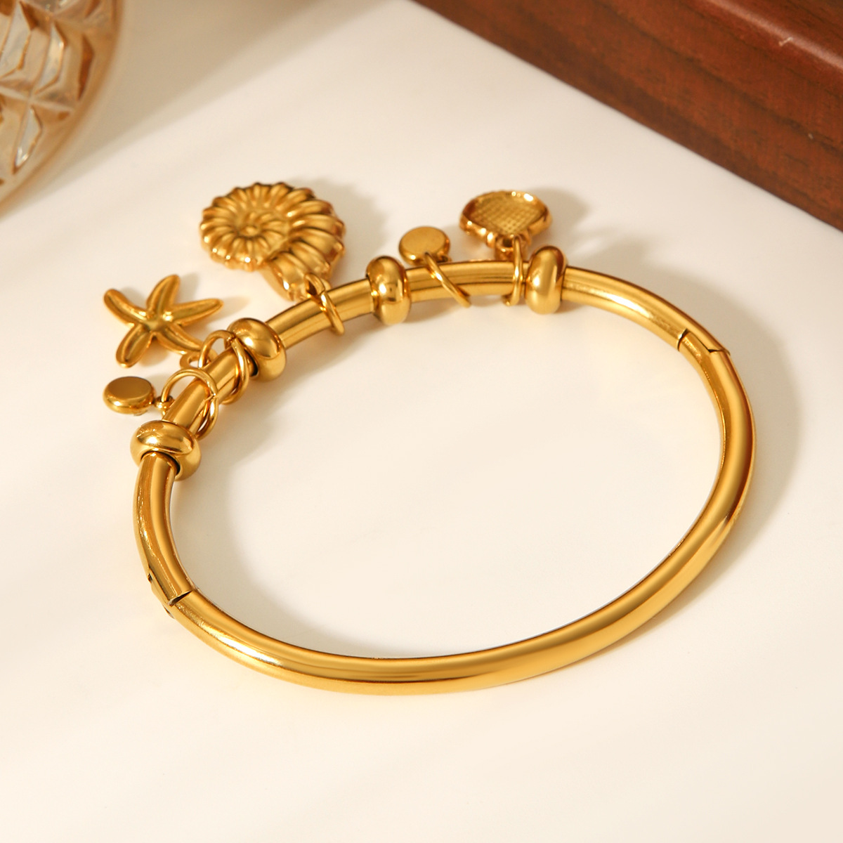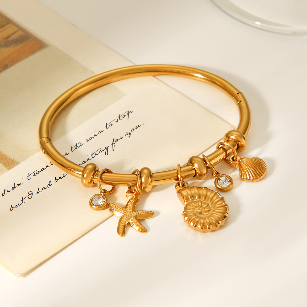 18K Gold-plated Stainless Steel Plain Bracelet, Starfish, Conch, Scallop DIY Accessories, Titanium Steel Bracelet for Women