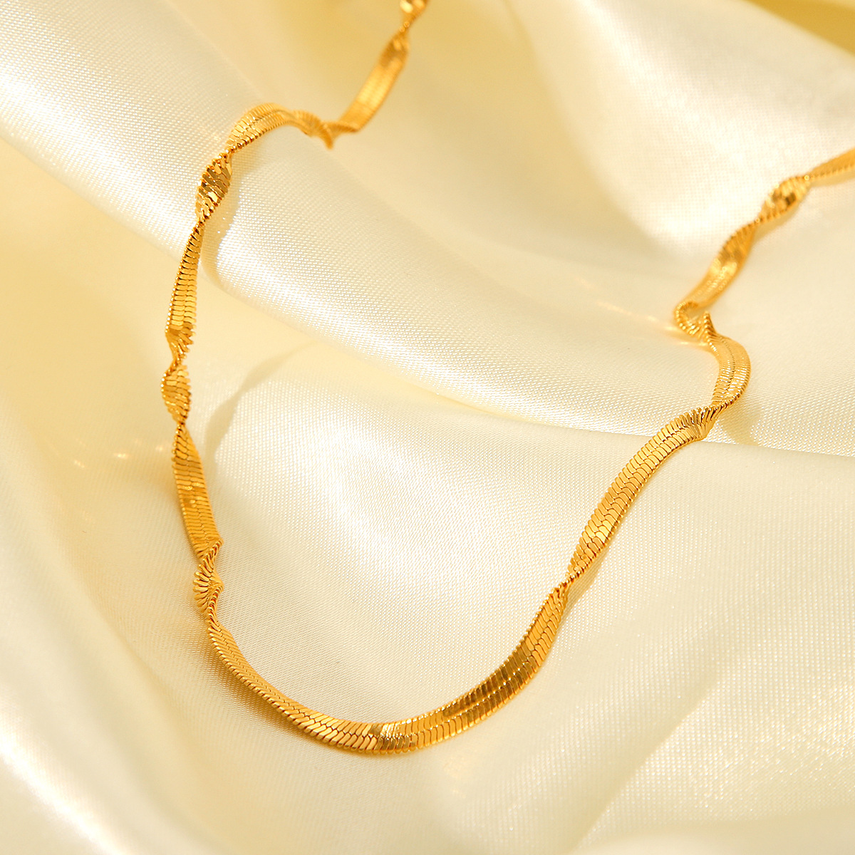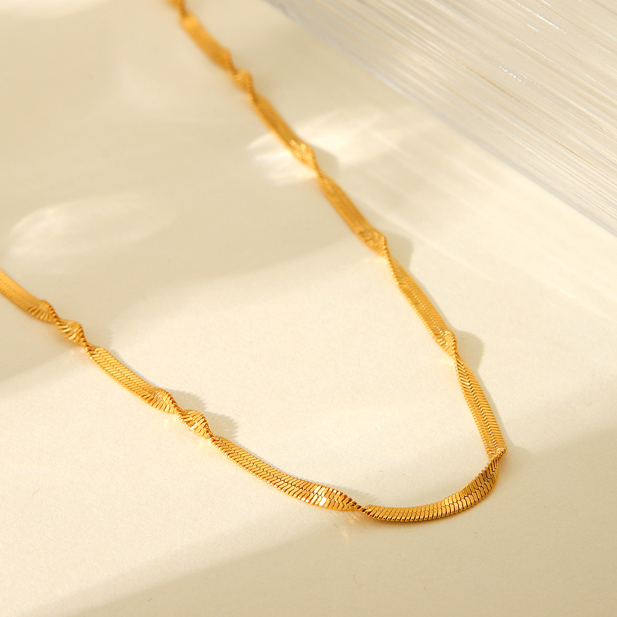 18K Gold-plated Stainless Steel Snake Bone Chain Necklace for Women, Non-fading Titanium Steel Clavicle Chain