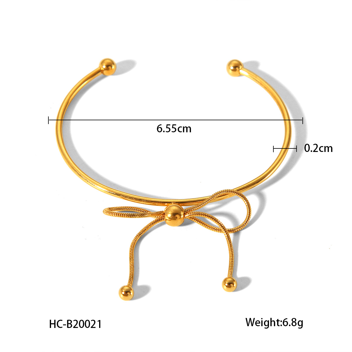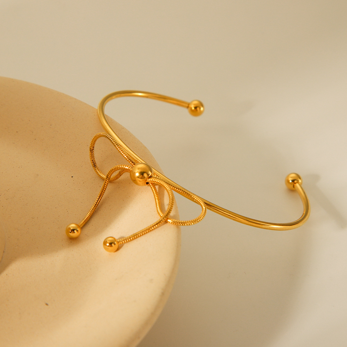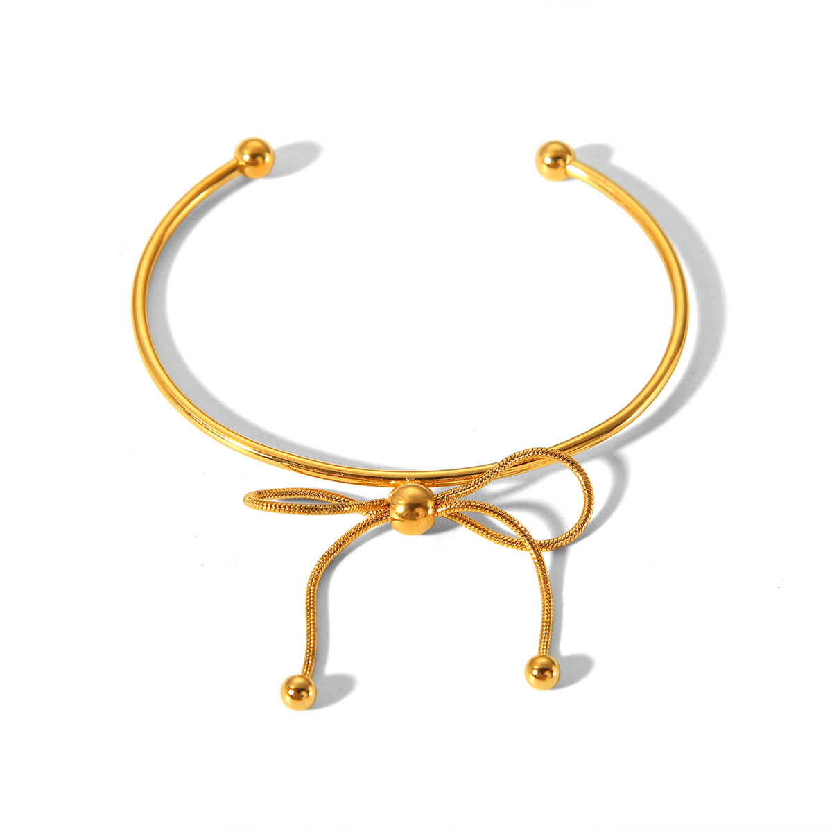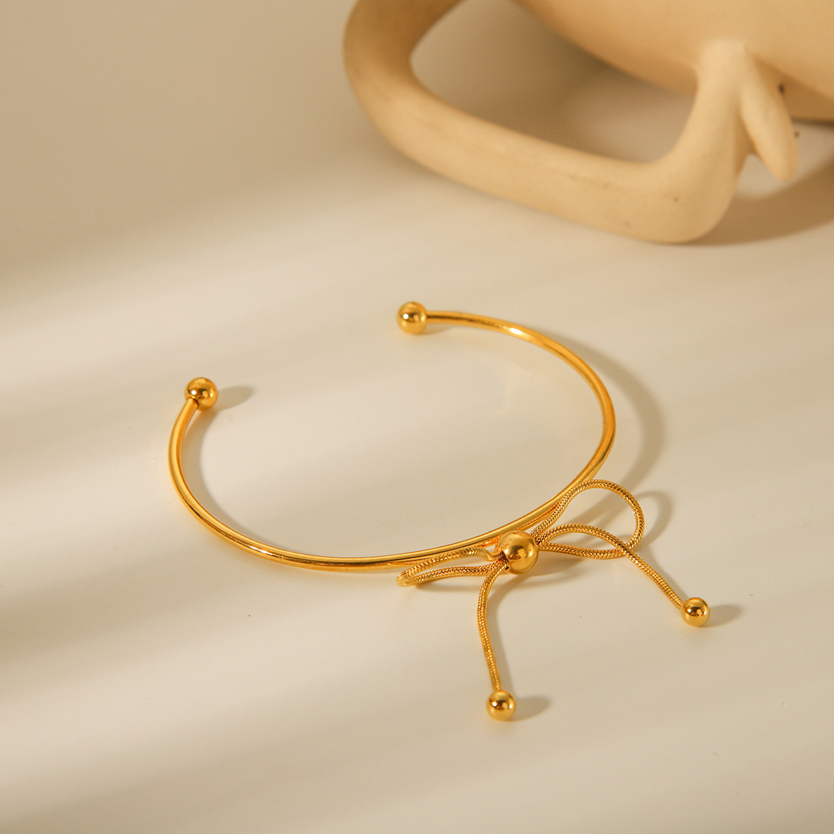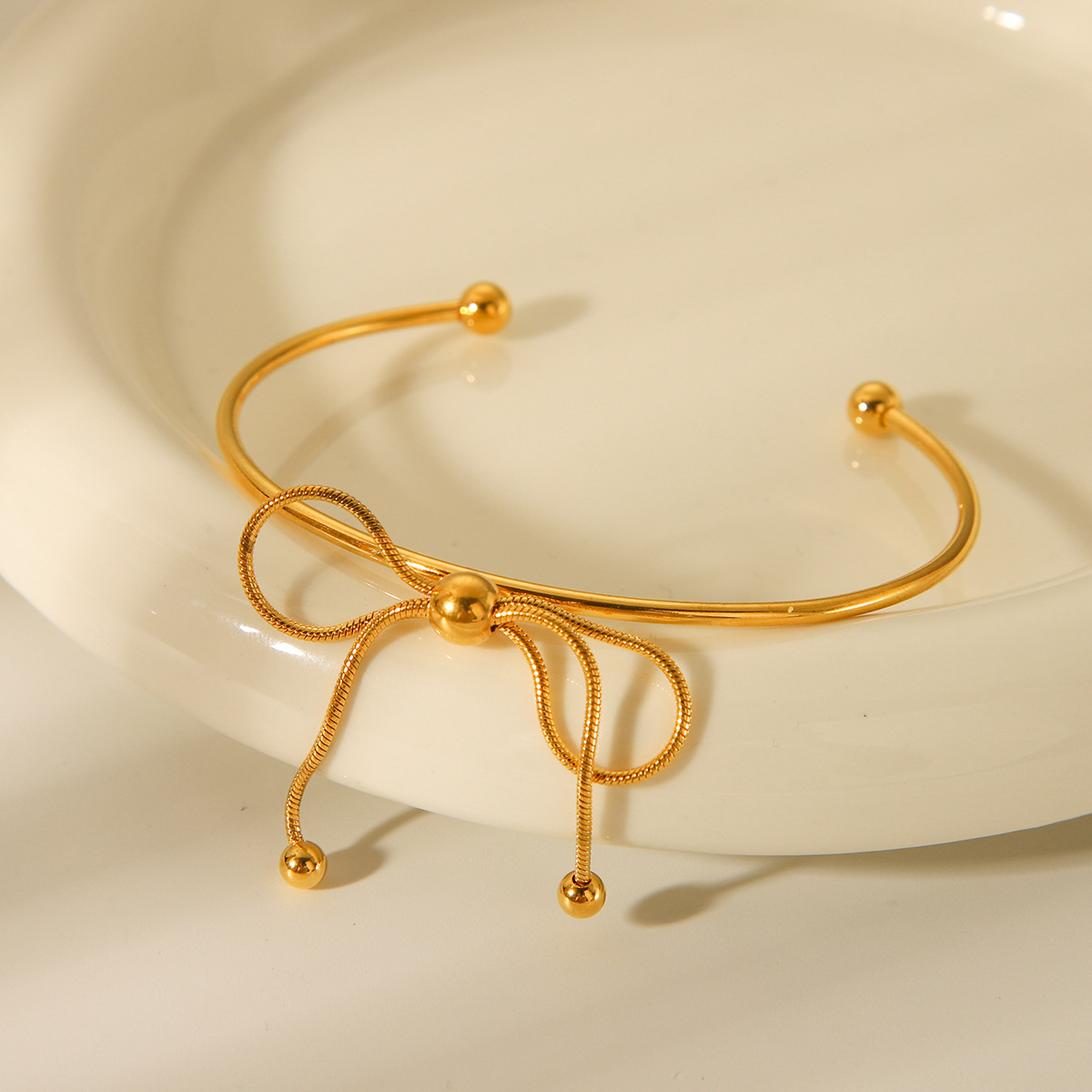 18K Gold Stainless Steel Bow Open Bracelet for Women, European and American Fashion, Versatile Titanium Steel Bracelet