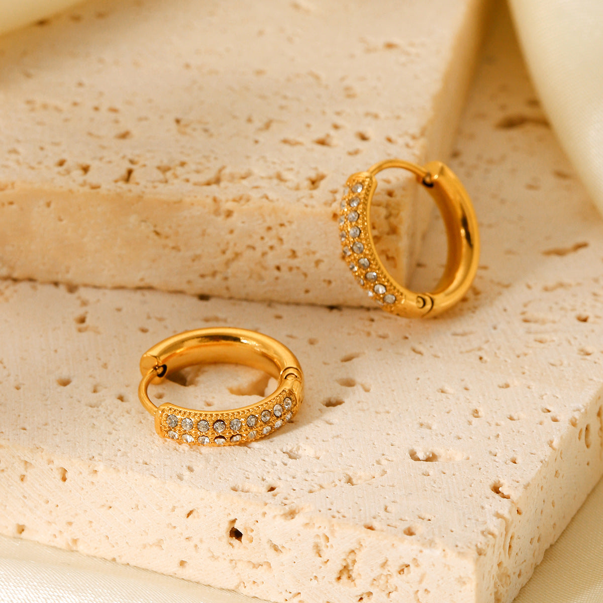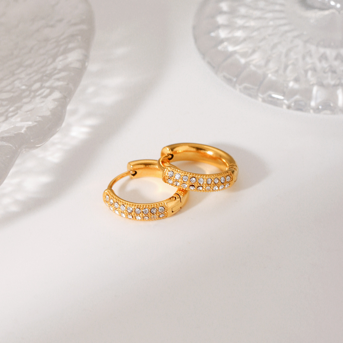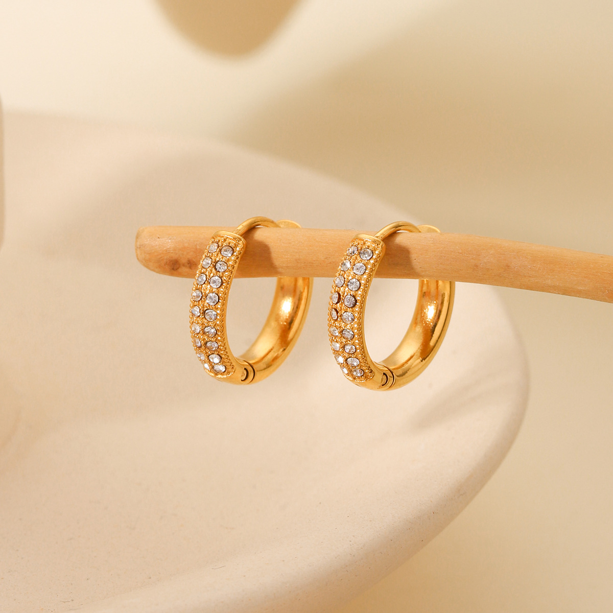 18K Gold Stainless Steel Diamond Studded Earrings for Women in INS Fashion, Simple and Versatile Titanium Steel Earrings