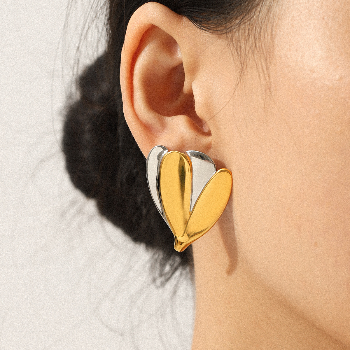18K Gold Stainless Steel Earrings, Flower-shaped Ear Jewelry, Exuding A Sense of Light Luxury and High-end Quality, Made of Titanium Steel, Ensuring No Fading, and Featuring Ear Studs