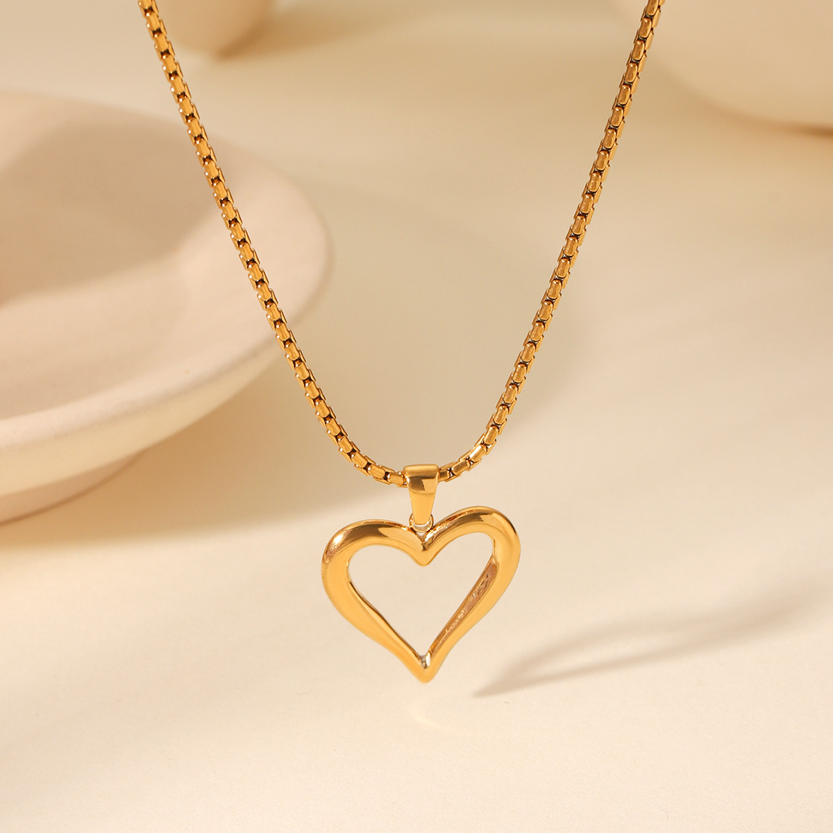 18K gold stainless steel hollow-out heart pendant necklace for women, fashionable and personalized, titanium steel, non-fading, clavicle chain