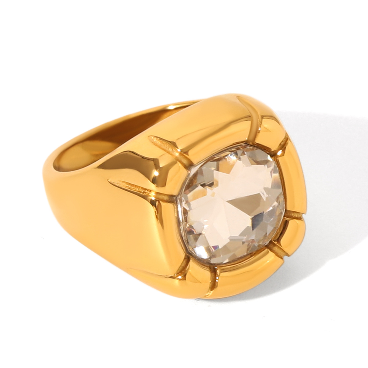 18K Gold Stainless Steel Inlaid Zircon Ring Female Non-fading Ring Ins Wind Titanium Steel Jewelry Casting Ring