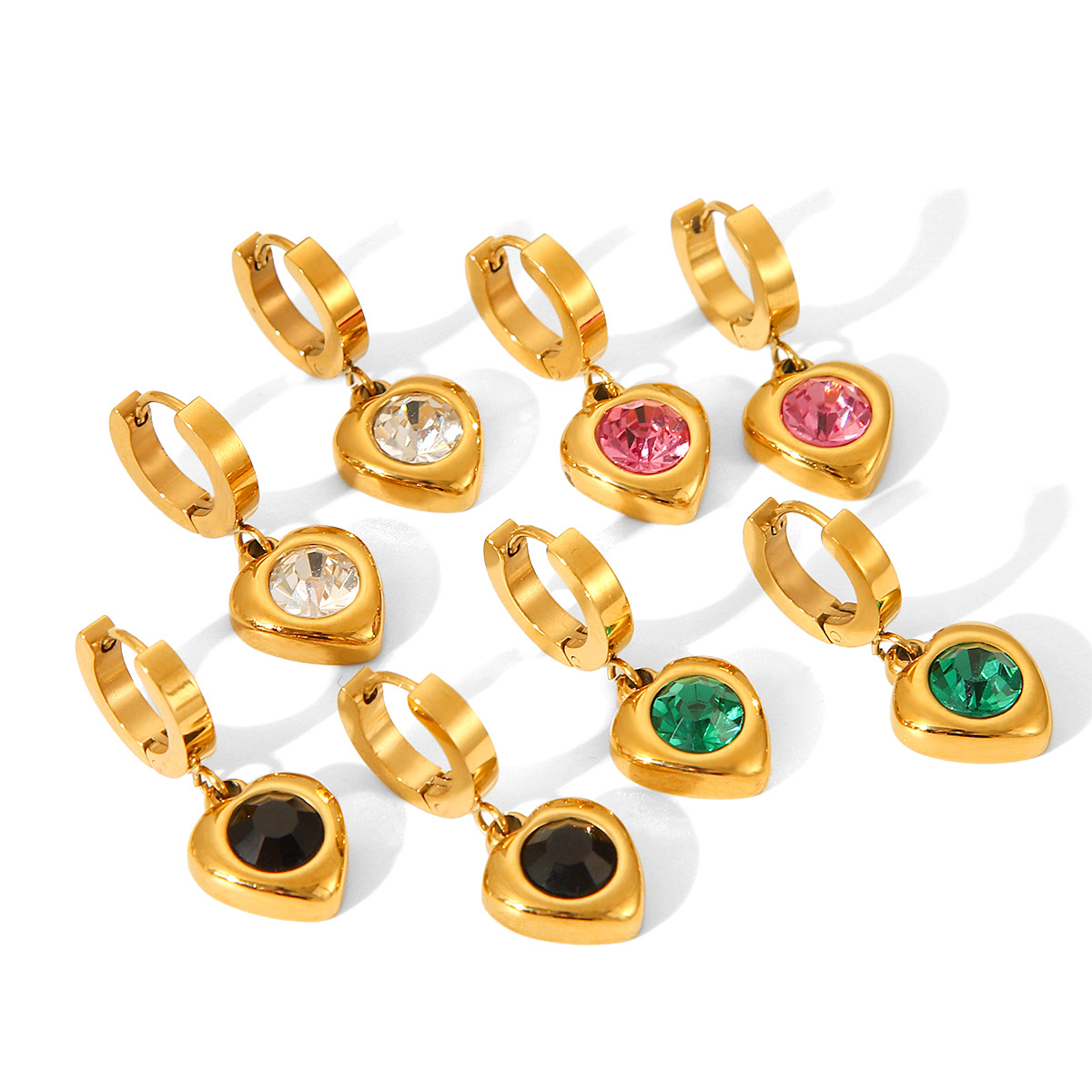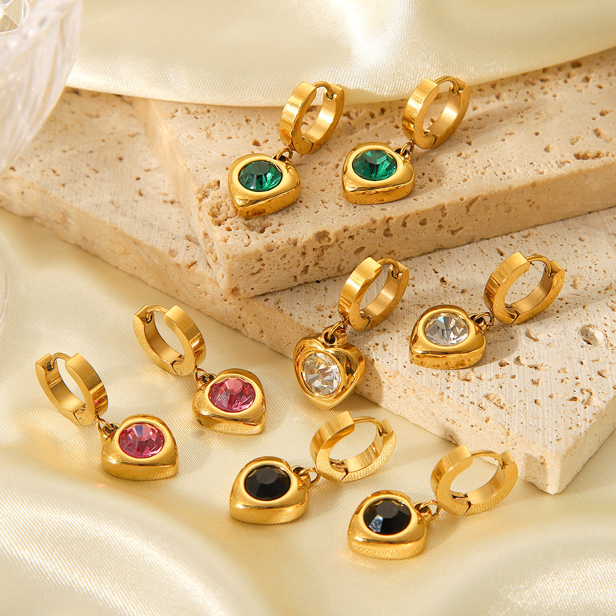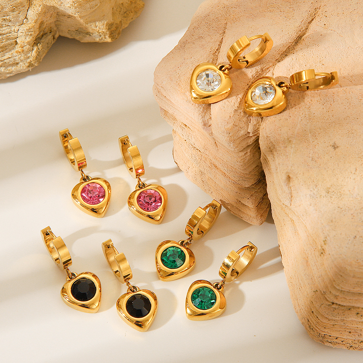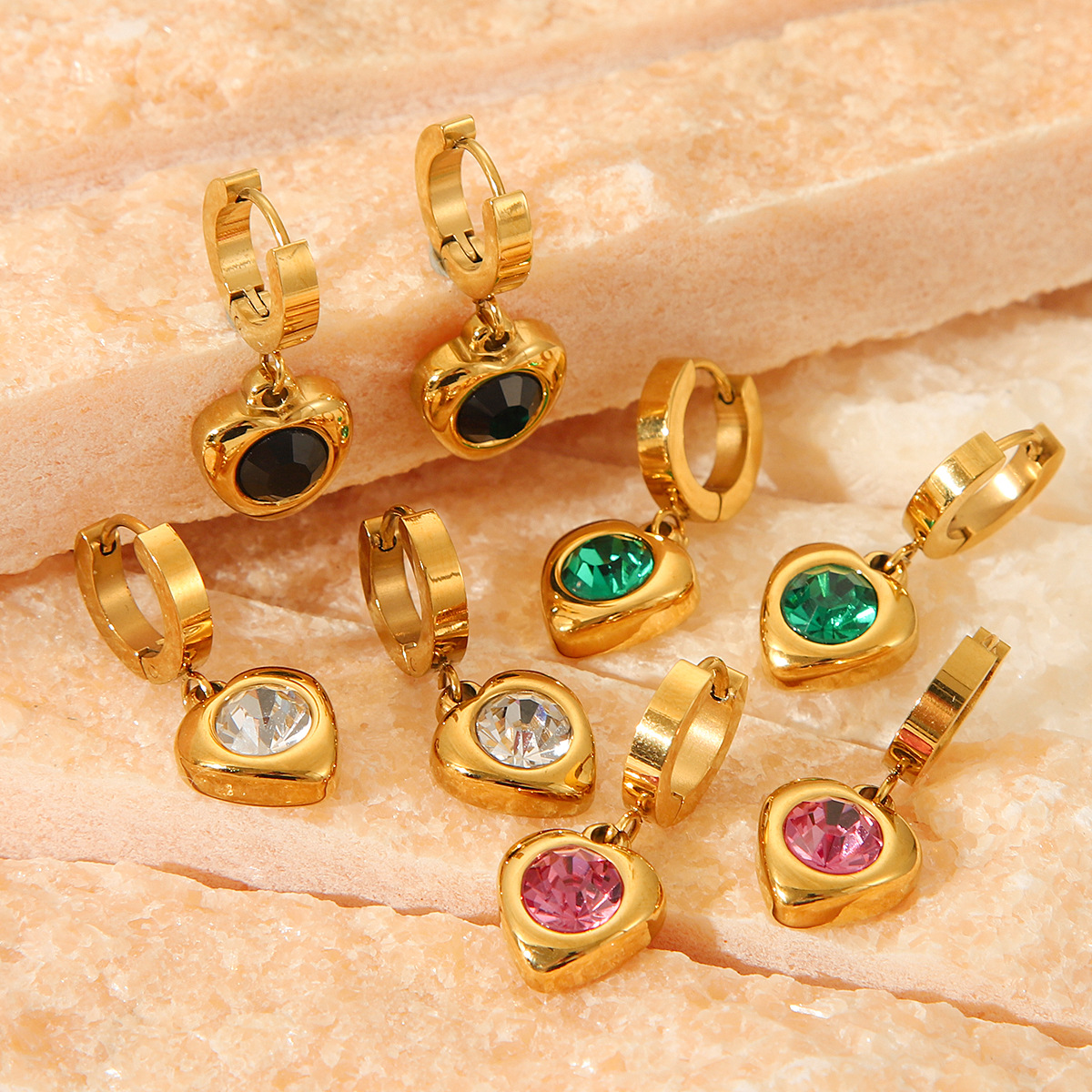 18K gold stainless steel jewelry heart pendant zircon earrings women's light luxury high-end titanium steel earrings