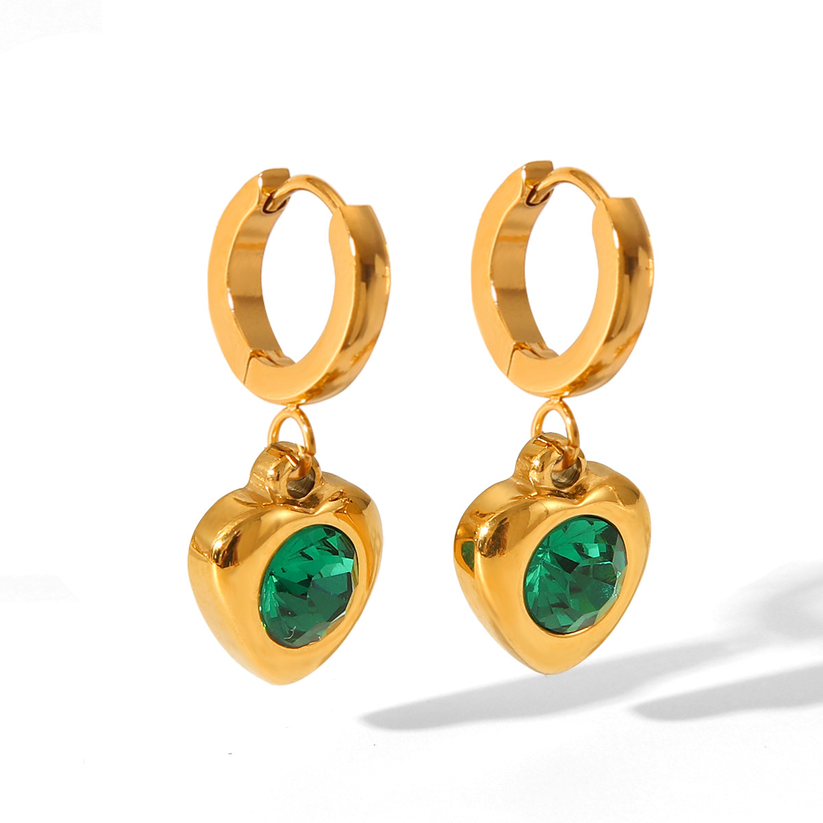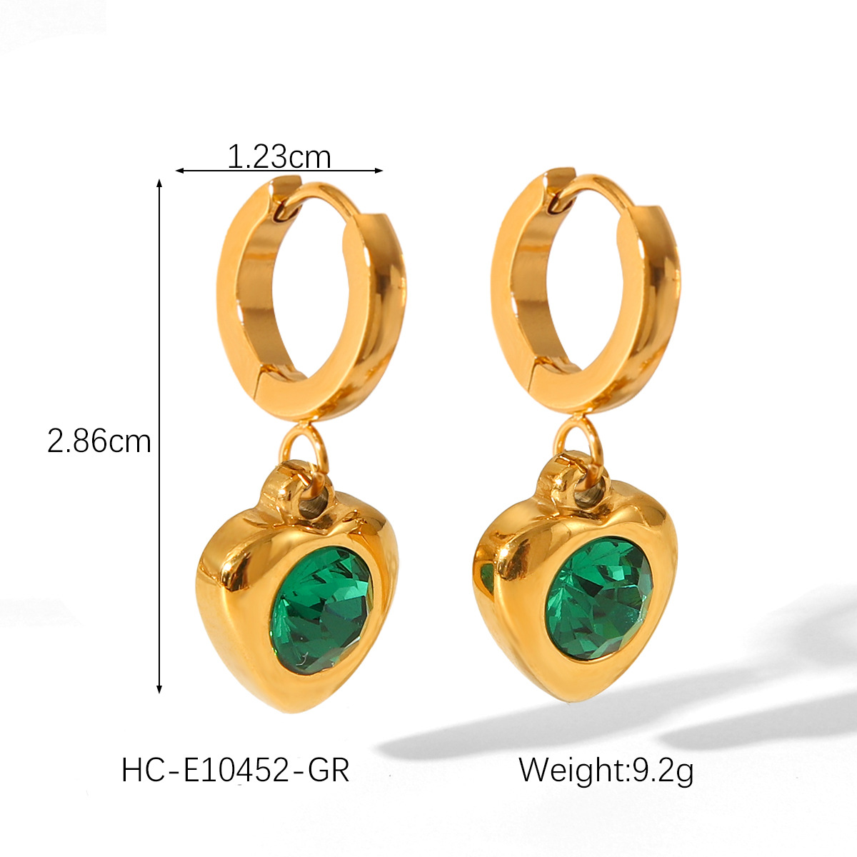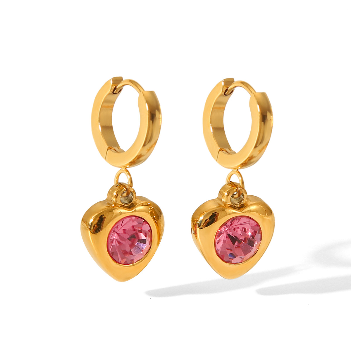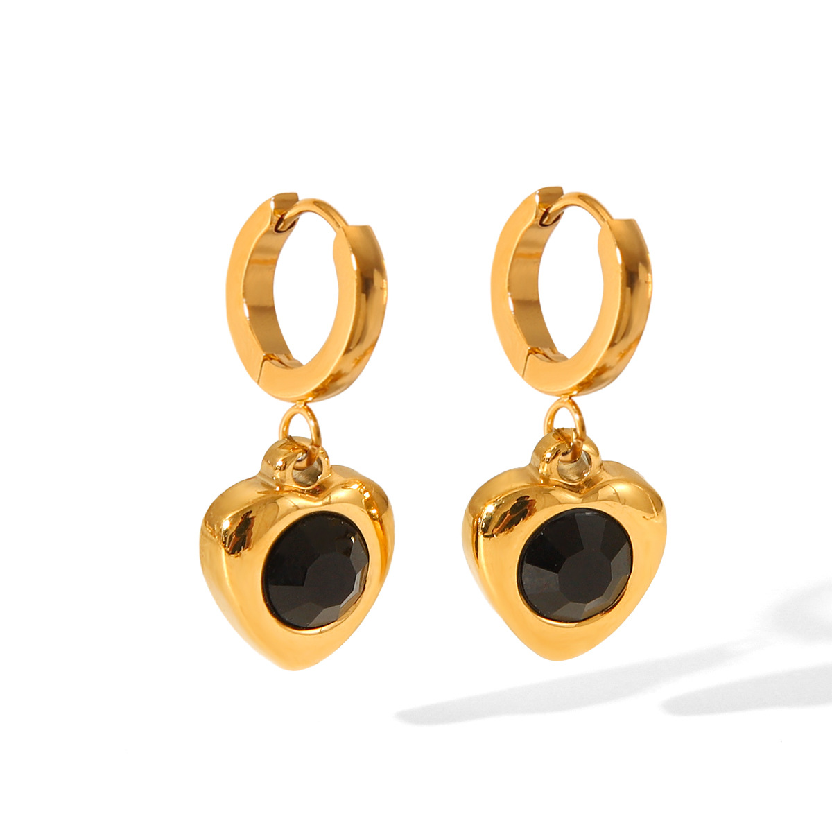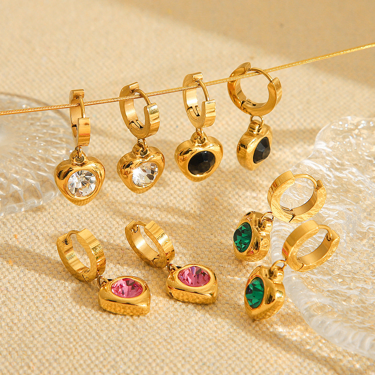 18K gold stainless steel jewelry heart pendant zircon earrings women's light luxury high-end titanium steel earrings