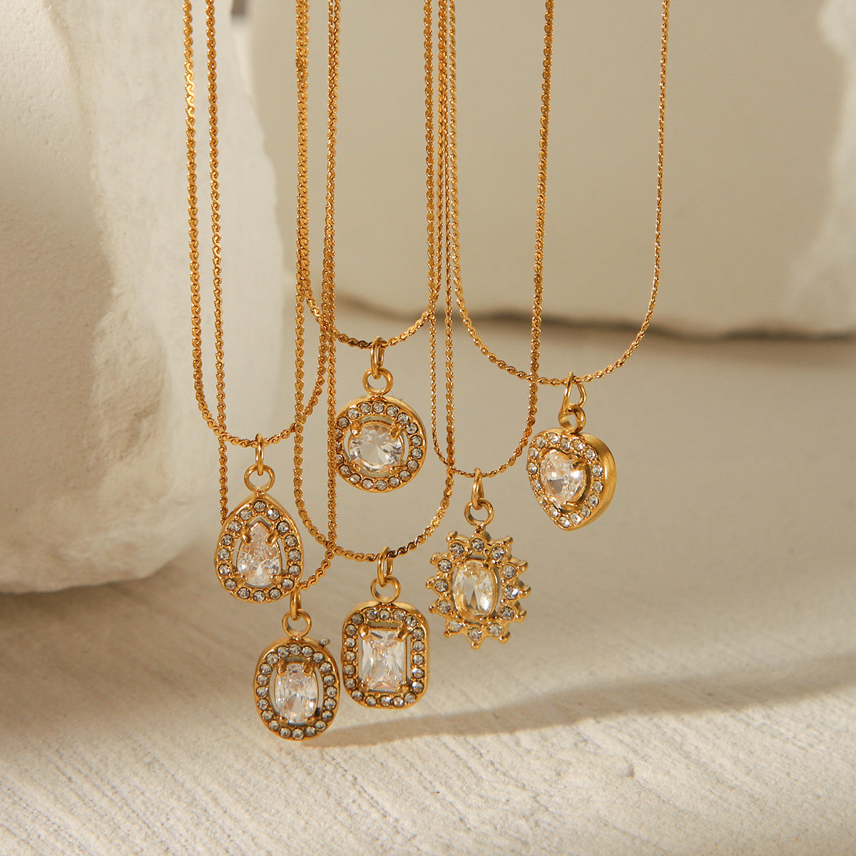 18K Gold Stainless Steel Necklace Female Ins Style Fashion Personality Geometric Titanium Steel Necklace Heart Necklace