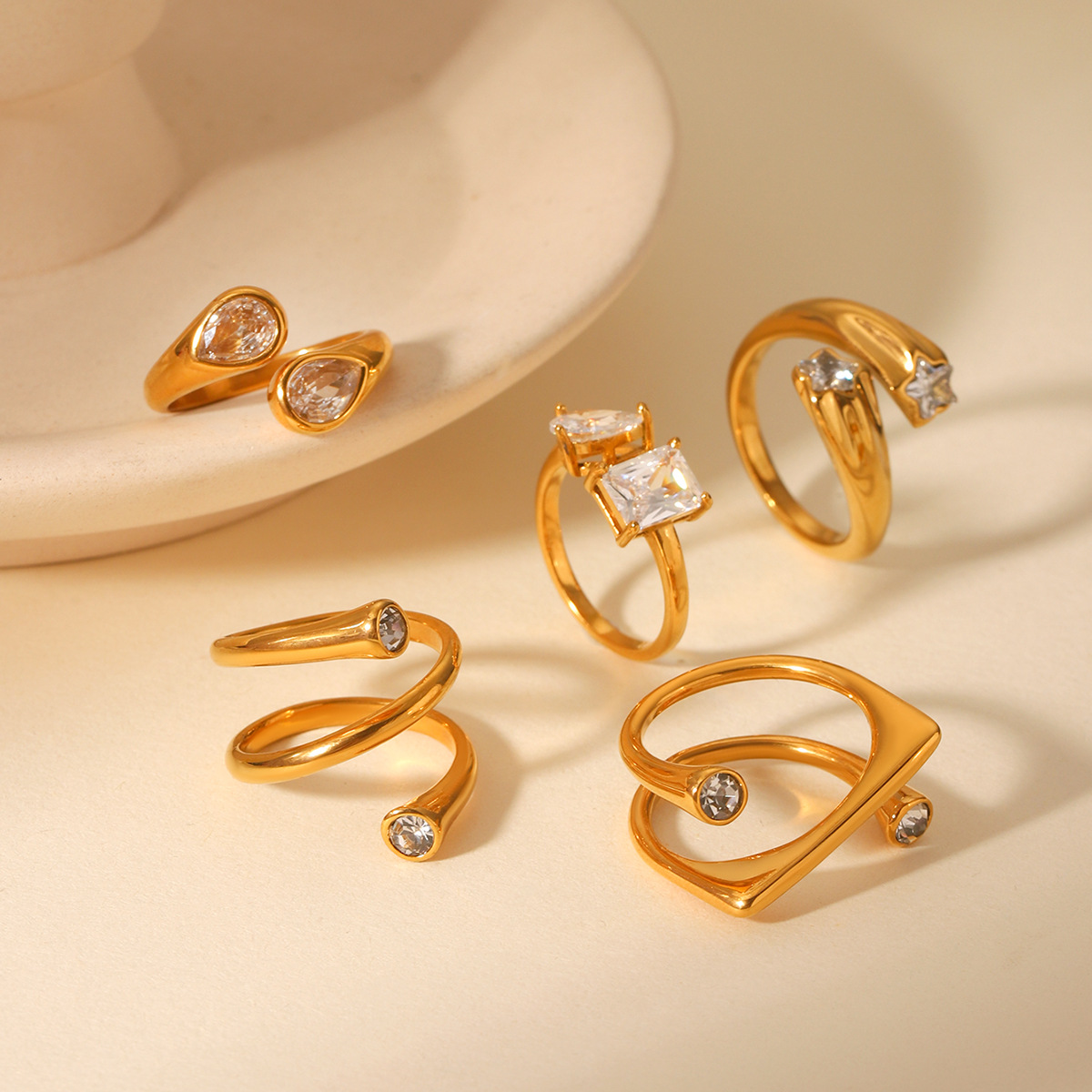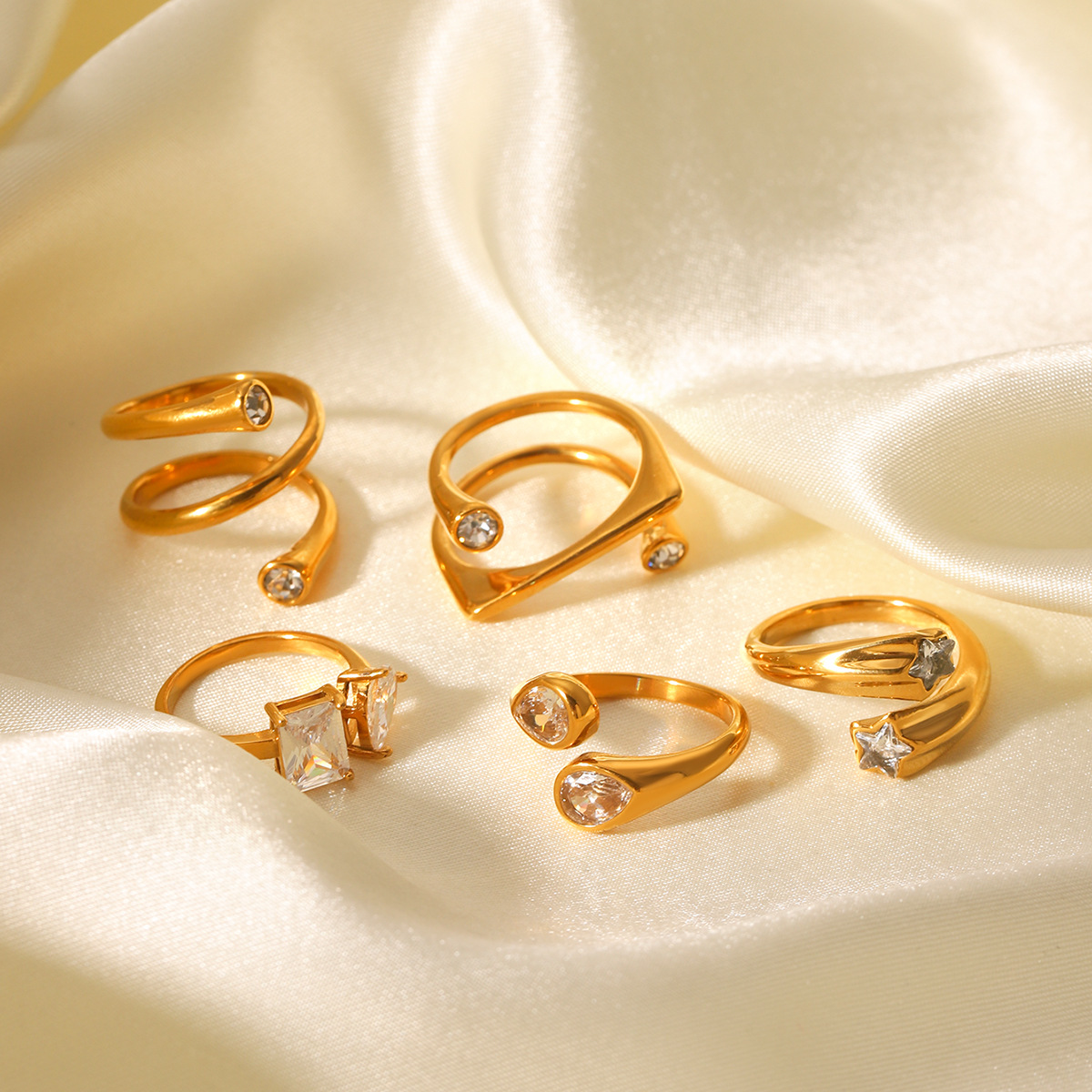 18K Gold Stainless Steel Open Ring with Zircon, Niche and High-end Female Titanium Steel Non-fading Finger Ring