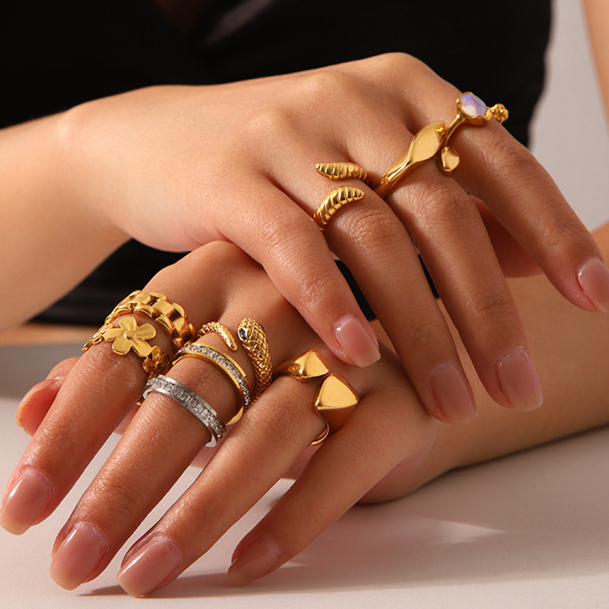 18K Gold Stainless Steel Ring Geometric Smooth Heart-shaped Droplet Fashion Personality Titanium Steel Ring