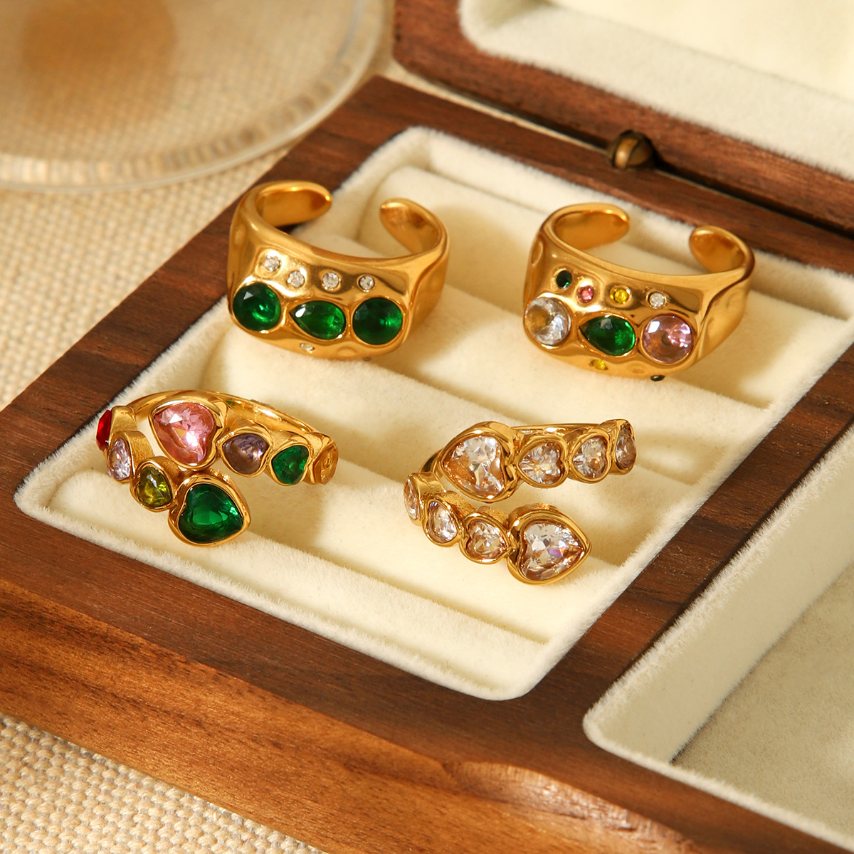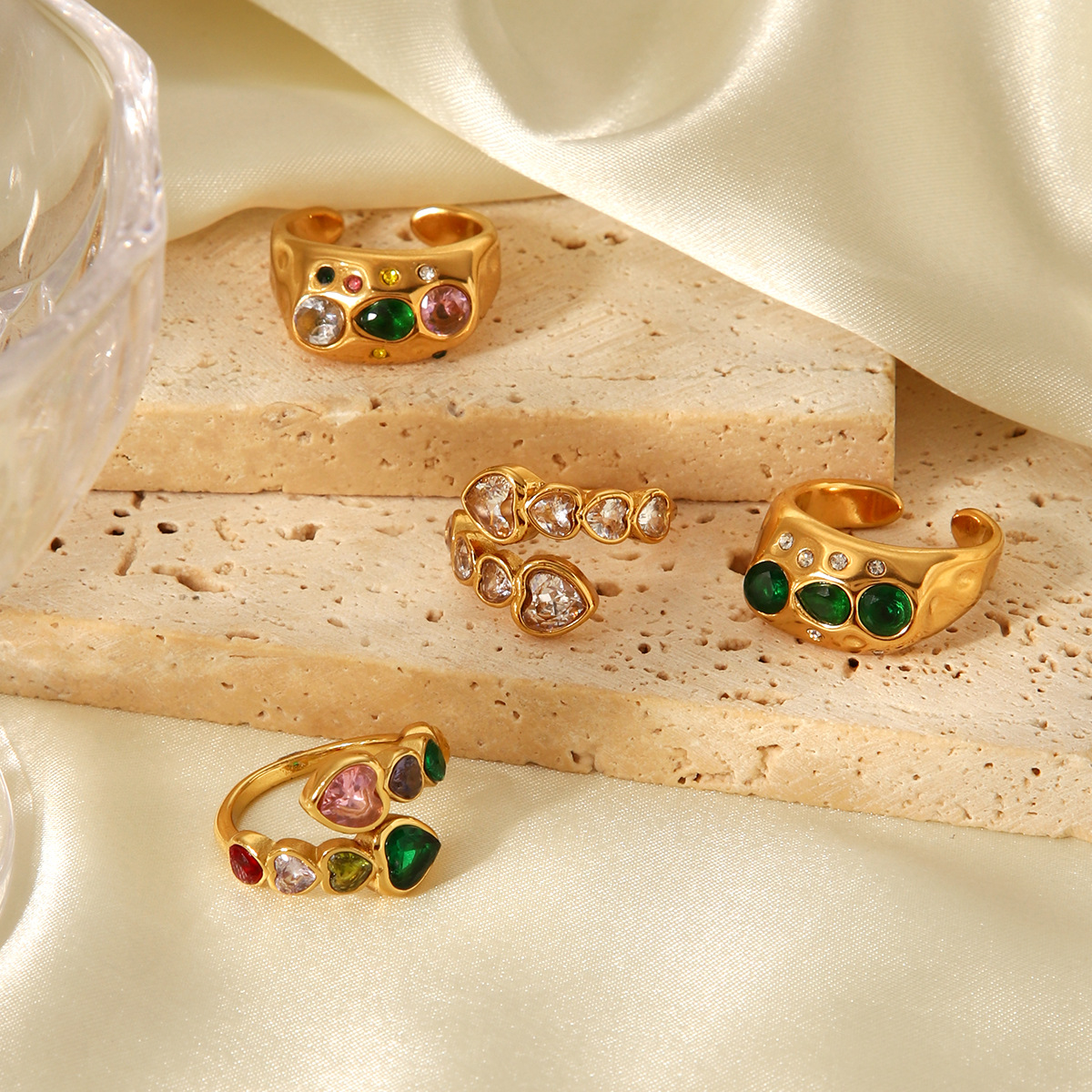 18k Gold Stainless Steel Ring Jewelry, Inlaid with Heart-shaped Zircon, Open-end Ring, Made of Titanium Steel, Non-fading Ring
