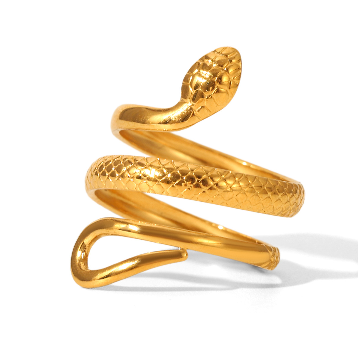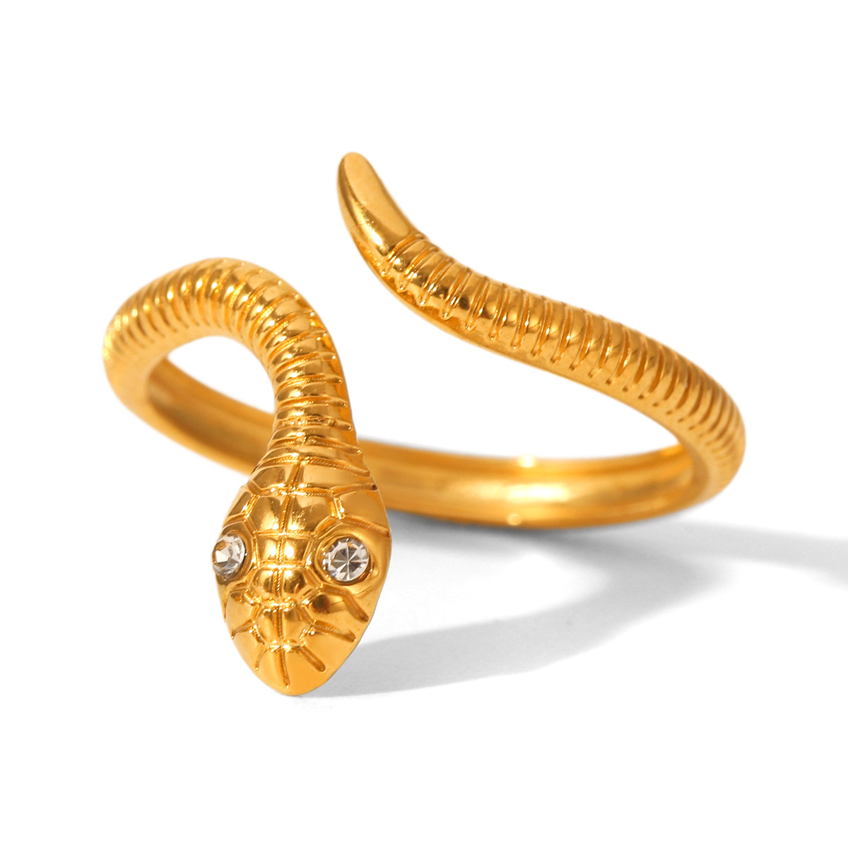 18K Gold Stainless Steel Snake Ring, Light Luxury Style, Titanium Steel, Flexible Snake-shaped Opening, Non-fading, Hand Jewelry
