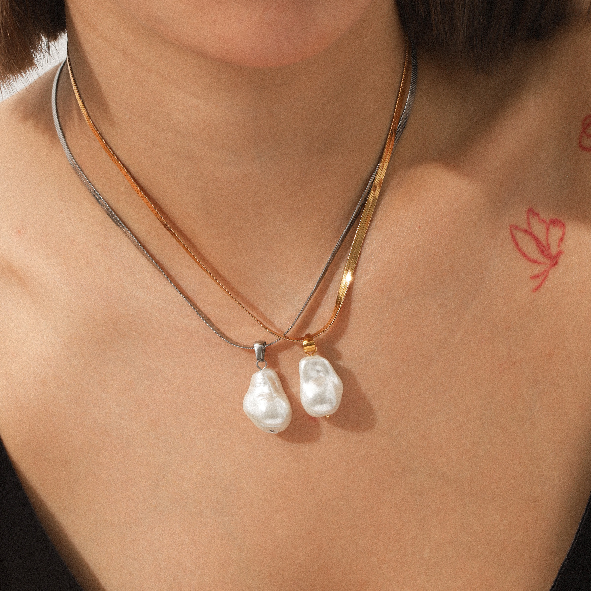 Baroque Pearl Pendant Necklace, Stainless Steel Blade Chain, 18K Gold-plated Clavicle Chain, Women's Titanium Steel Necklace