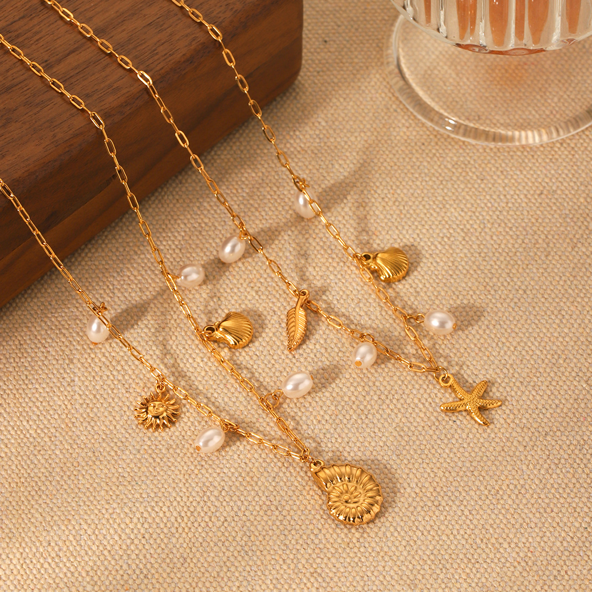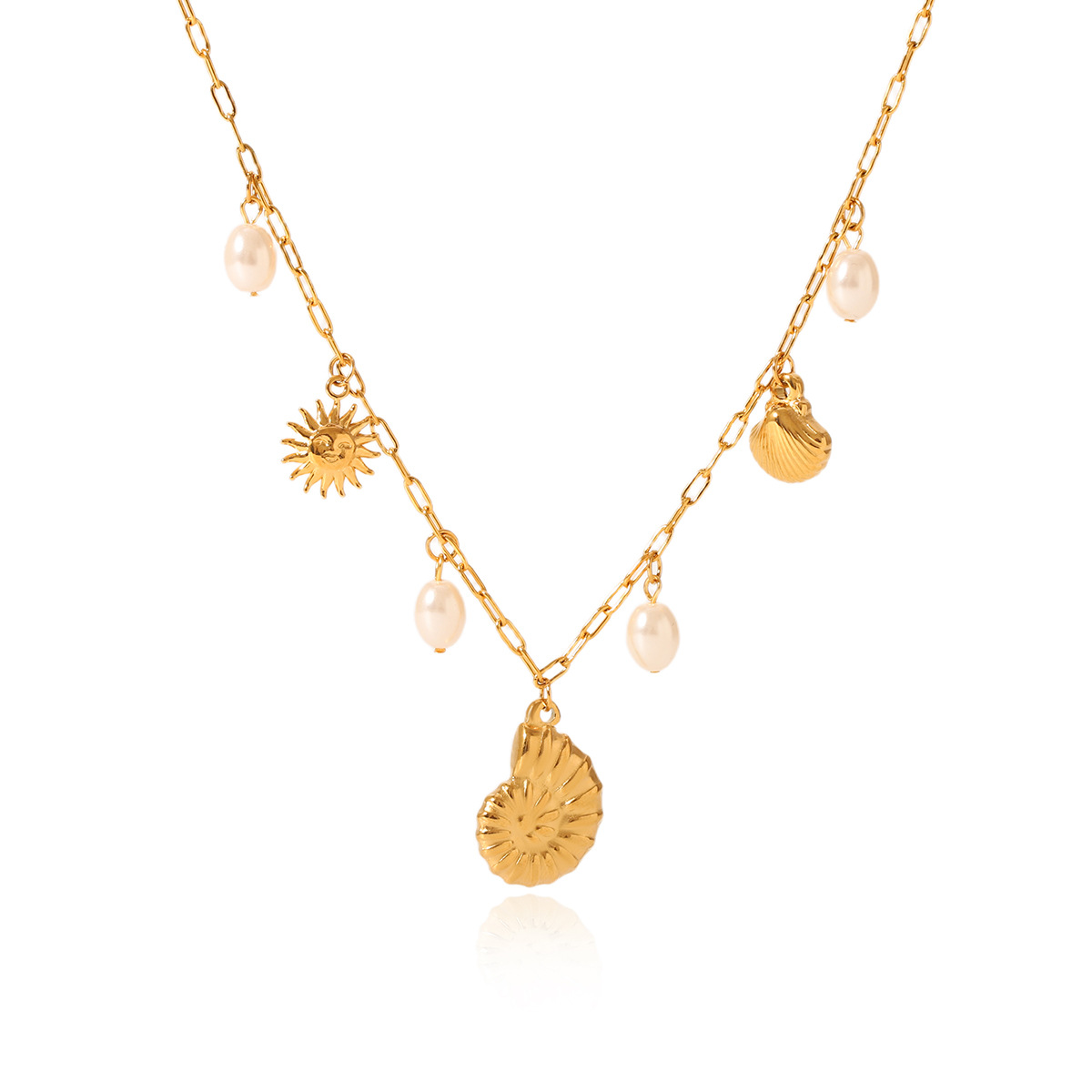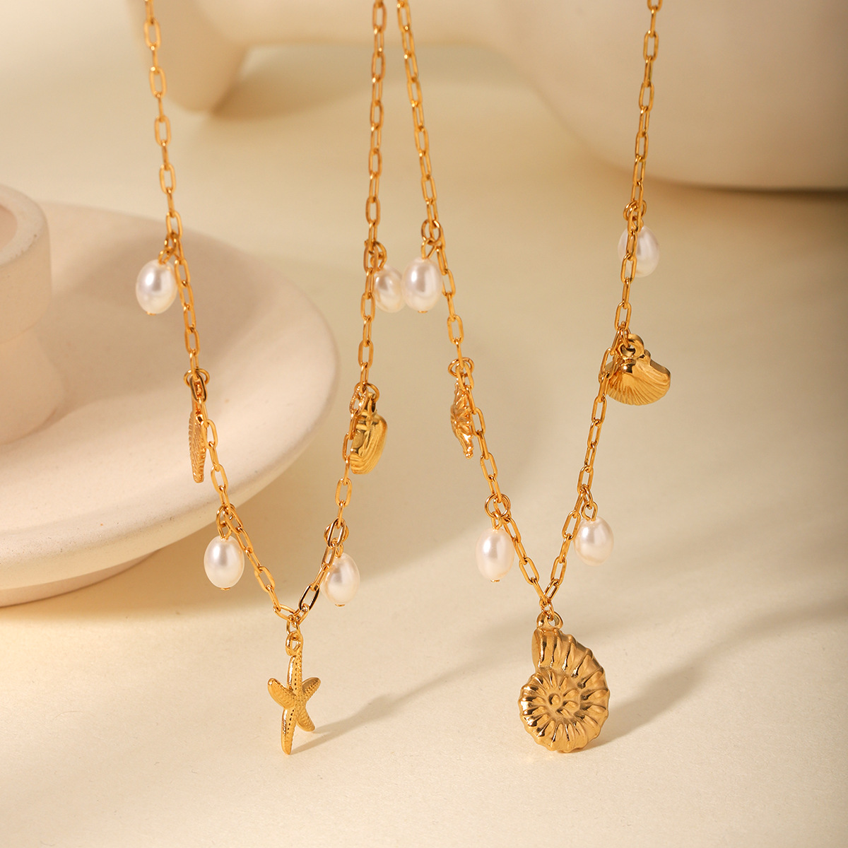 Beach Ocean Wind Stainless Steel Starfish Conch Shell Pendant Necklace Women's Pearl Necklace Design Sense Necklace