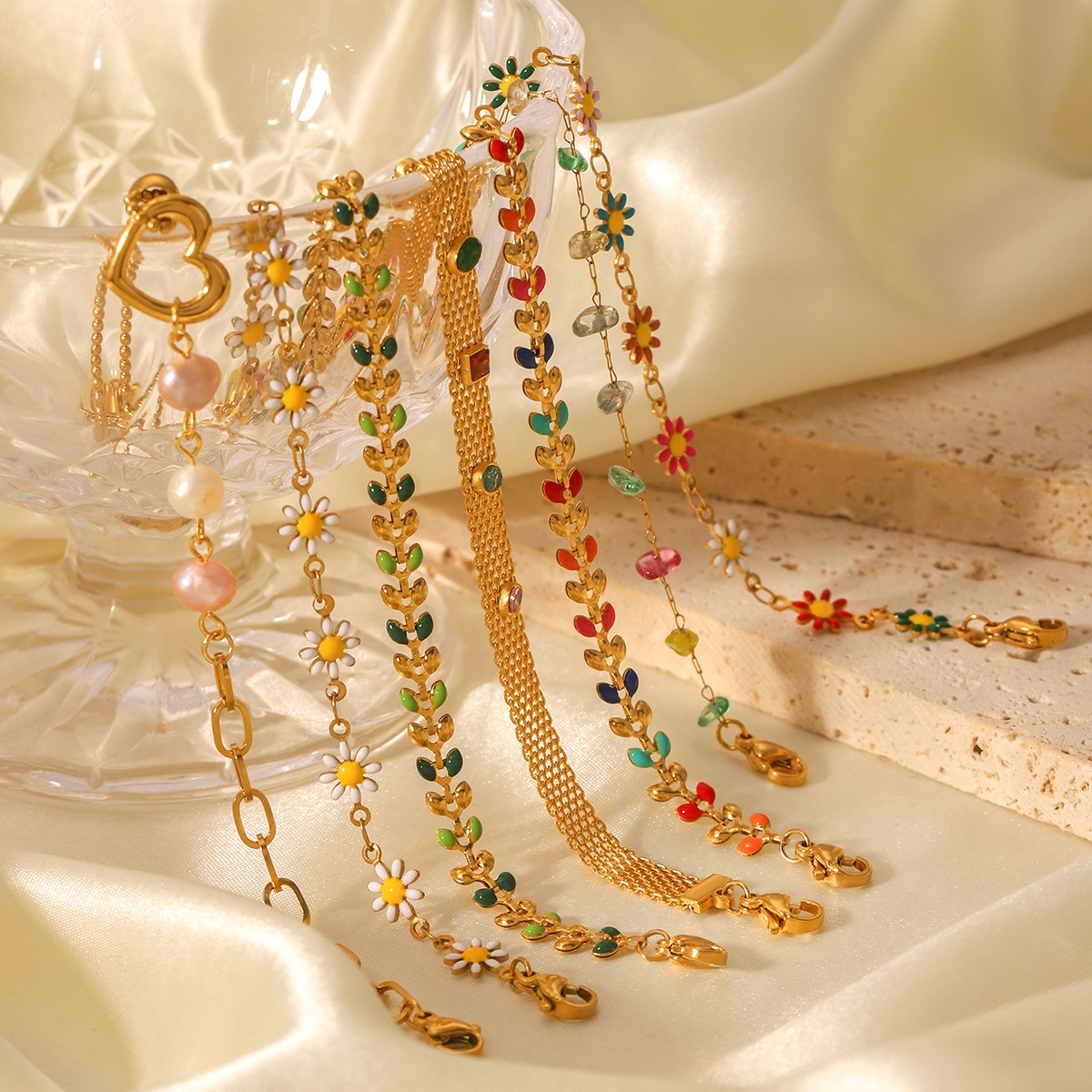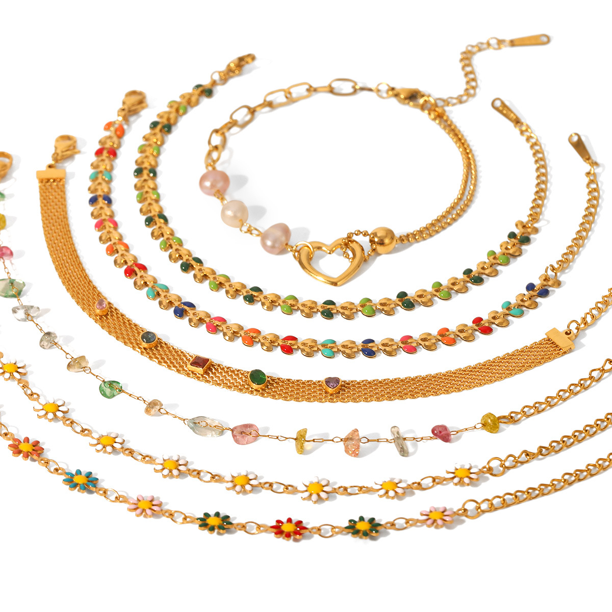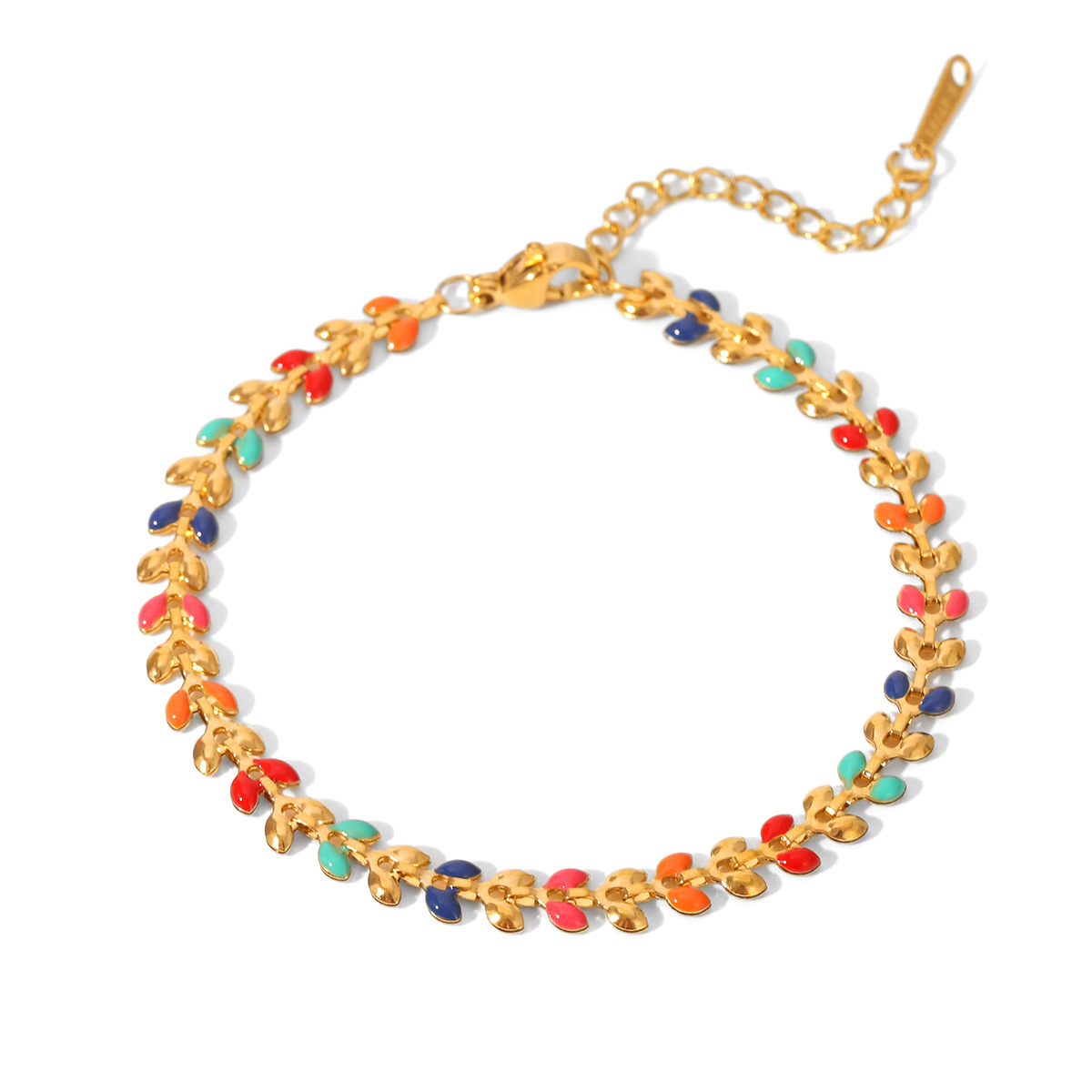Bohemian-style Stainless Steel Bracelet with Oil-dripped Colored Zircon Hand Jewelry for Women, Non-fading Jewelry