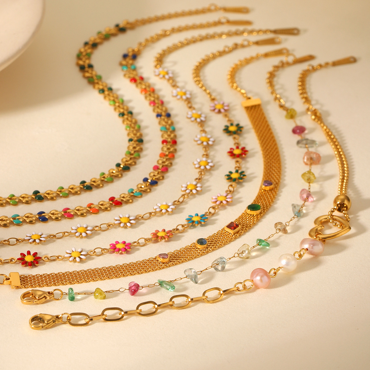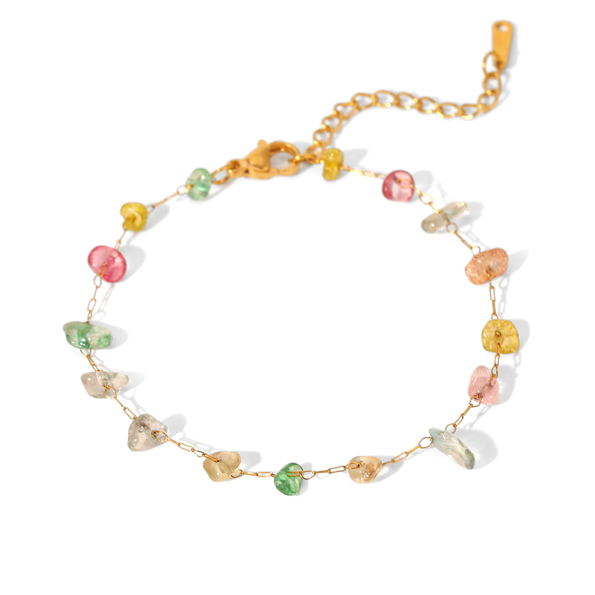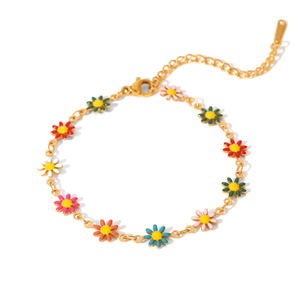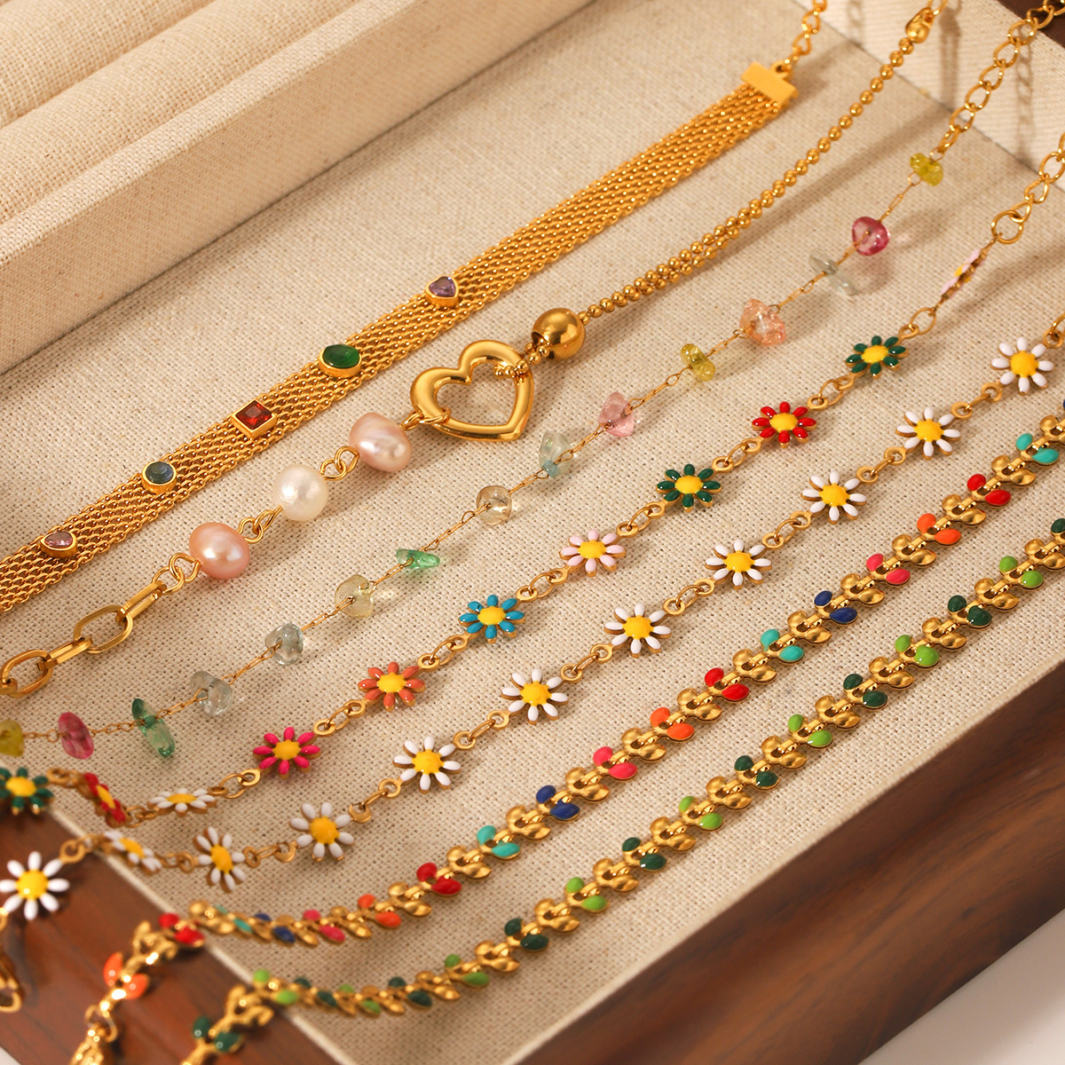 Bohemian-style Stainless Steel Bracelet with Oil-dripped Colored Zircon Hand Jewelry for Women, Non-fading Jewelry