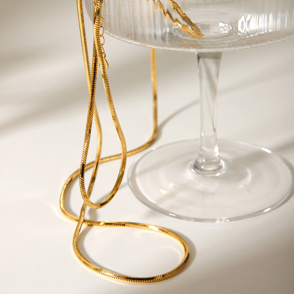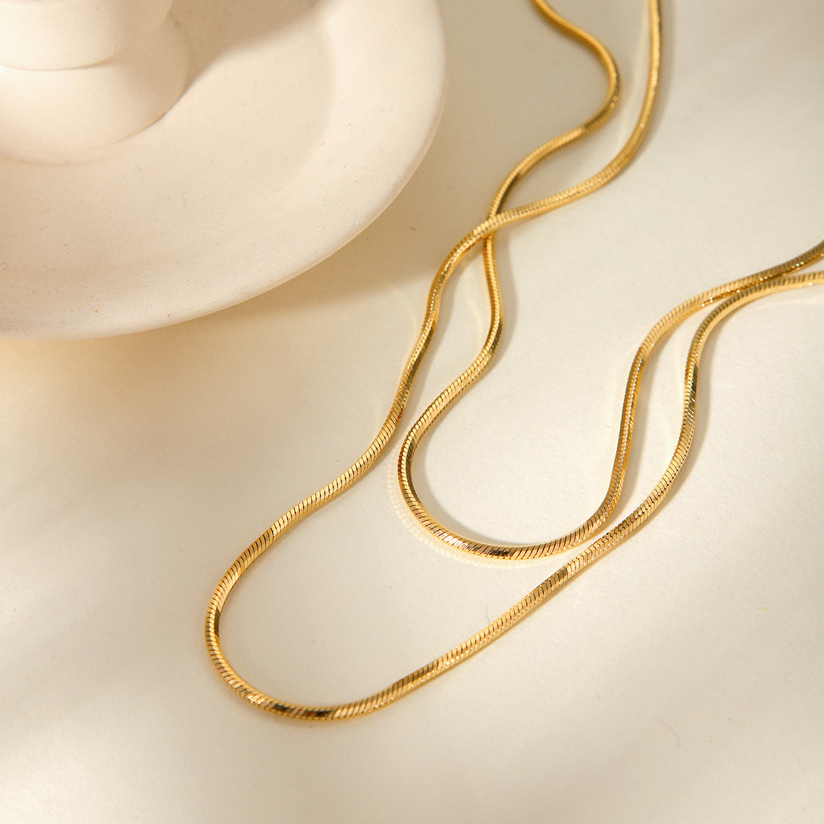 Double-layer 18K Gold Titanium Steel Sweater Chain Snake Bone Chain Stainless Steel Necklace Women's High-end Necklace