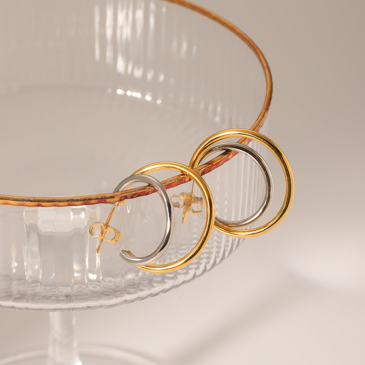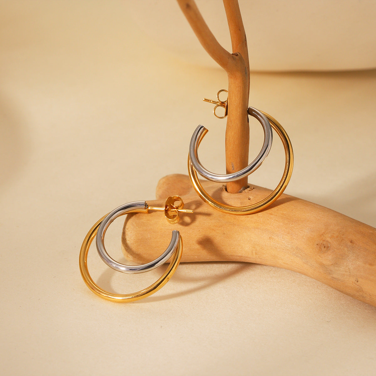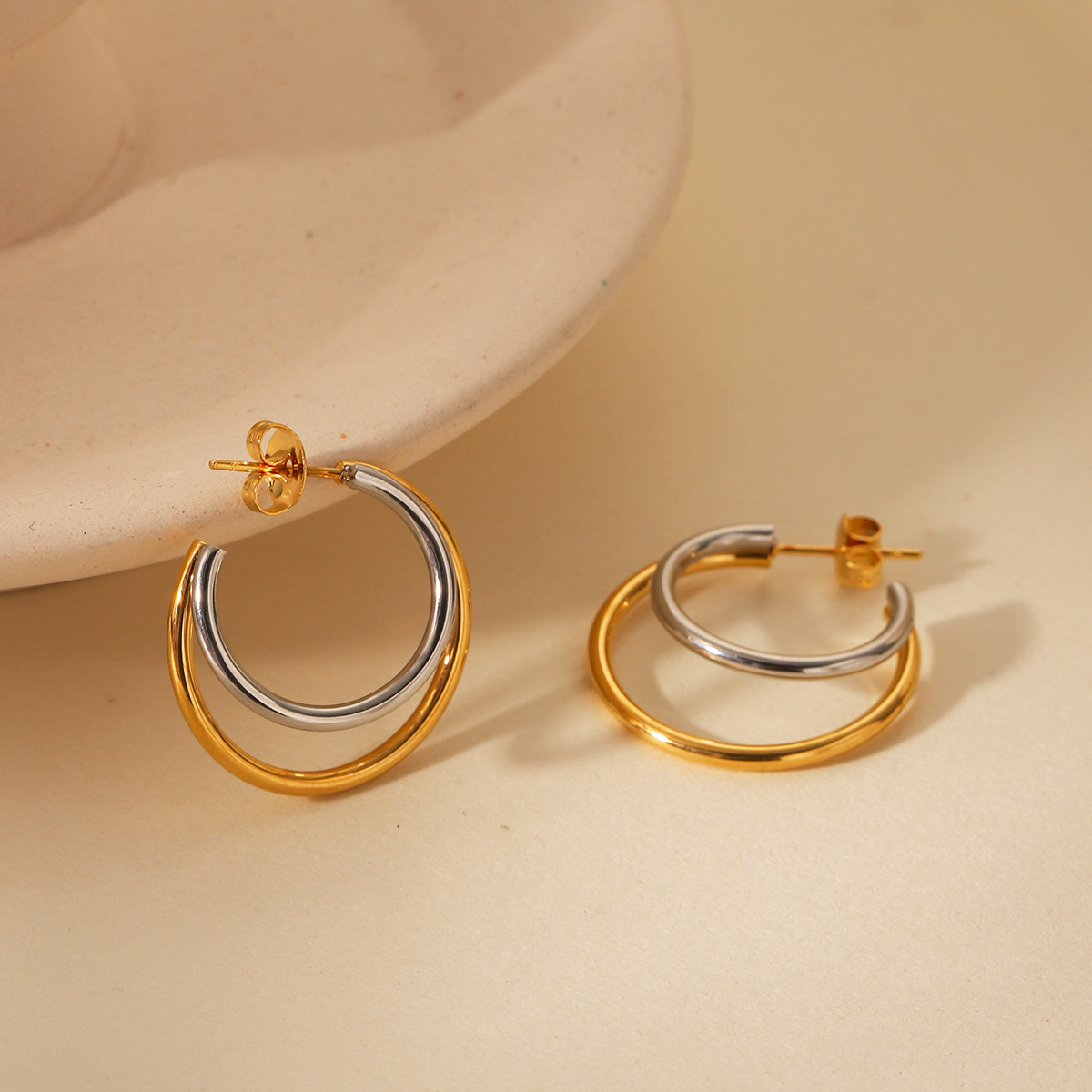 Double-layer Linear Titanium Steel Earrings for Women, Light Luxury, High-end Stainless Steel Color-block Earrings, Cross-border, Non-fading Earrings