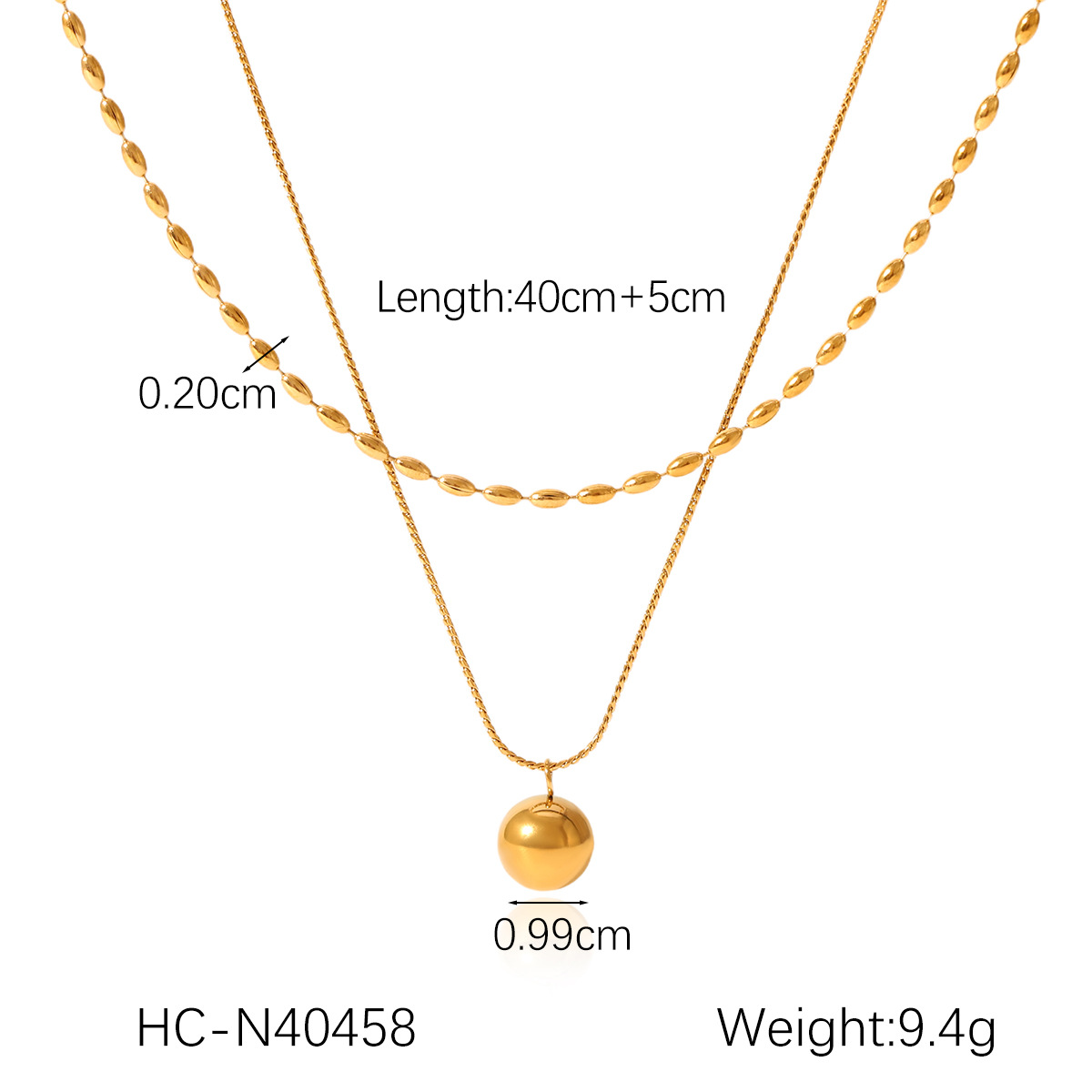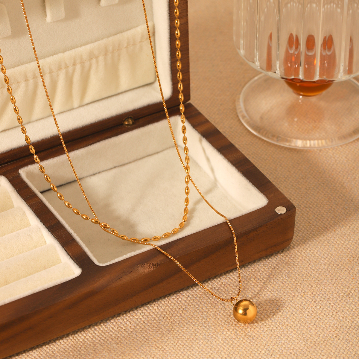 Double-layer stainless steel necklace, oval bead chain, Fried Dough Twists chain, small golden ball pendant, neck chain, titanium steel necklace accessory, does not fade