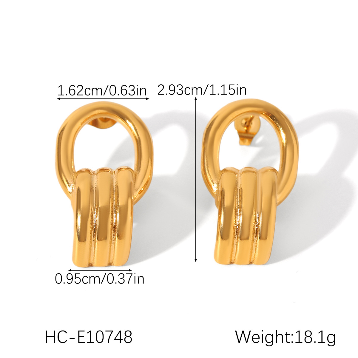 Elegant 18K Gold Stainless Steel Geometric Hollow-out Earrings, Temperament Ear Studs