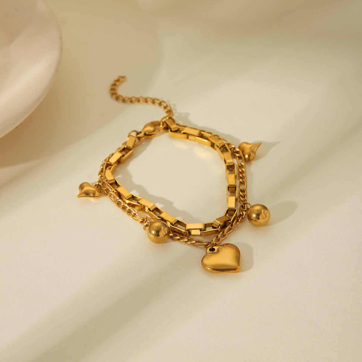 Fashionable and Personalized 18k Gold Stainless Steel Double-layer Stackable Bracelet for Women, Featuring A Design Sense and A Heart-shaped Pendant, Made of Titanium Steel