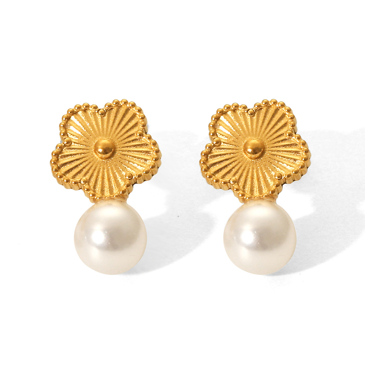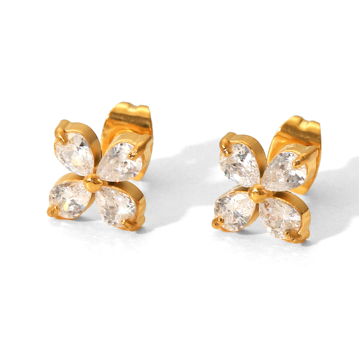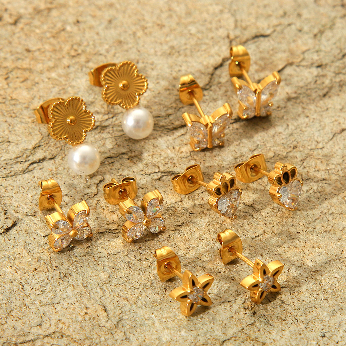 Fashionable and Personalized Butterfly Zircon Star Earrings, Ins-inspired Light Luxury Stainless Steel Five-petaled Flower Pearl Earrings