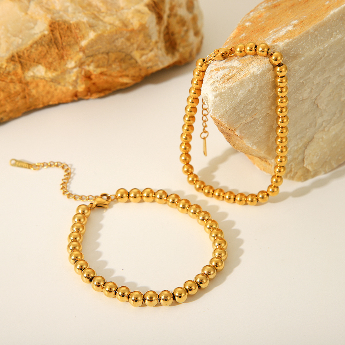 Fashionable and Simple 18K Gold Steel Ball Bracelet for Women Stainless Steel Bracelet INS Style Titanium Steel Jewelry Round Ball Chain