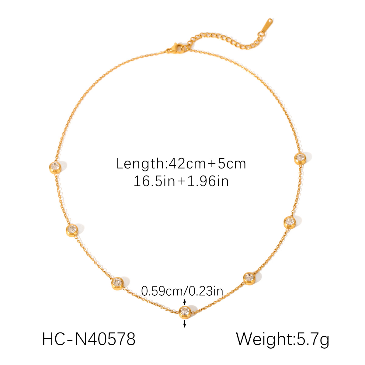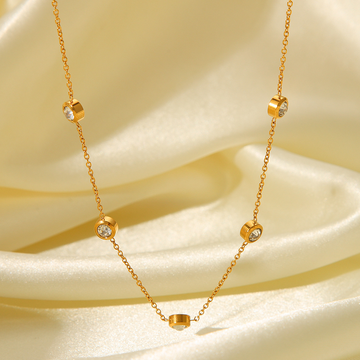 Fashionable, Personalized, Minimalist Round Zircon Necklace Made of Titanium Steel, Non-fading, 18K Gold Stainless Steel Necklace