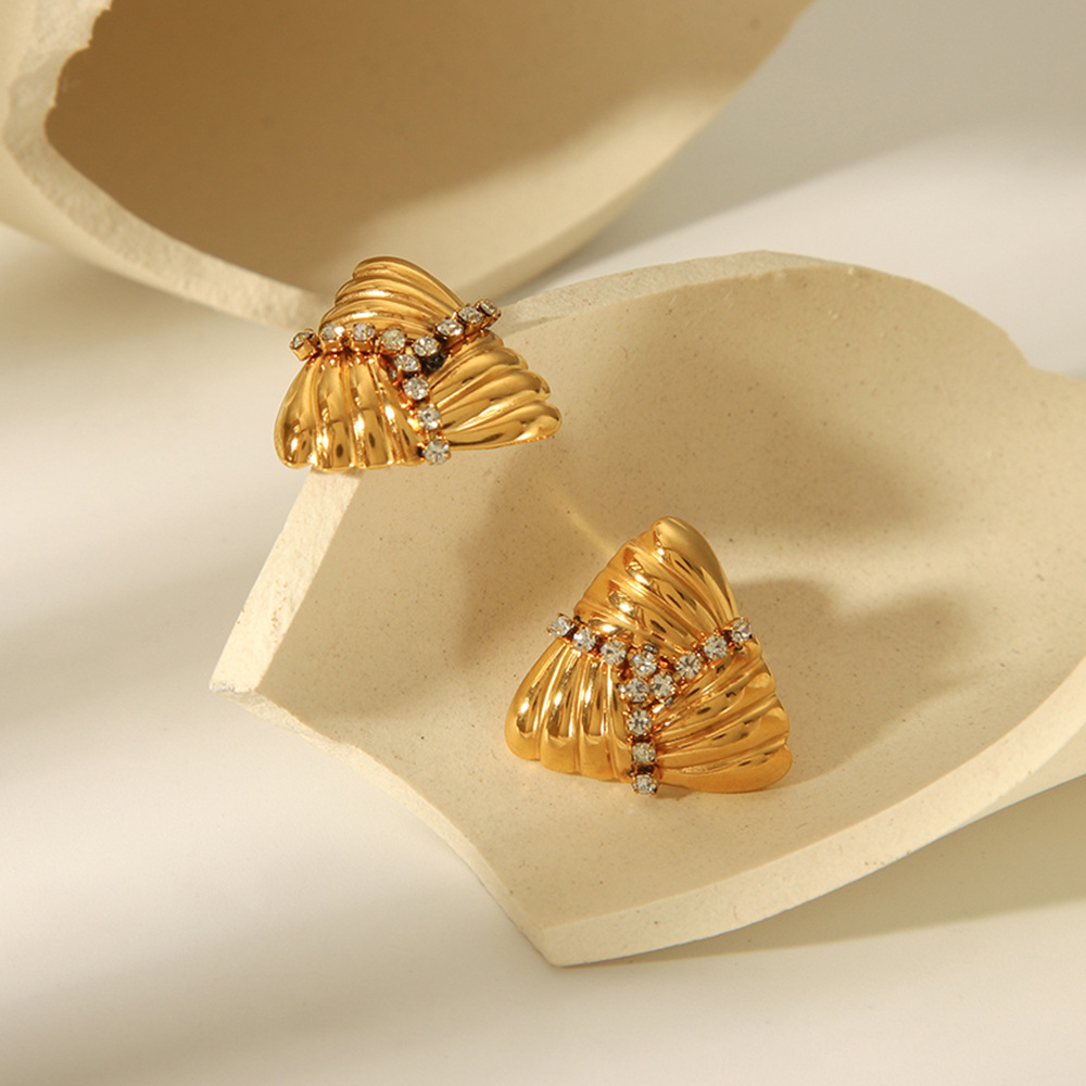 Fashionable Trendy 18k Gold Stainless Steel Earrings with A Woven Texture Design, Diamond-encrusted Earrings Studs, and Titanium Steel Earrings