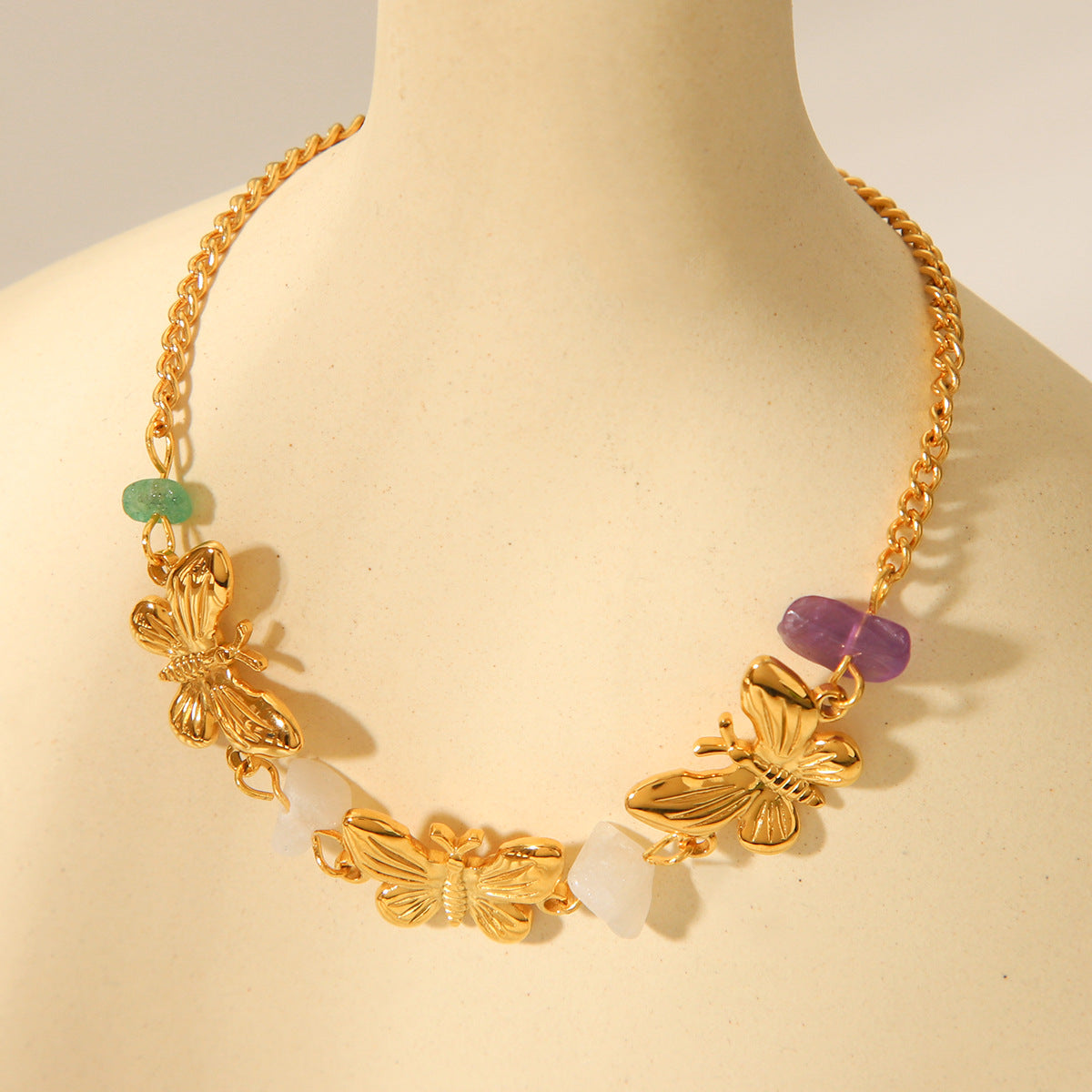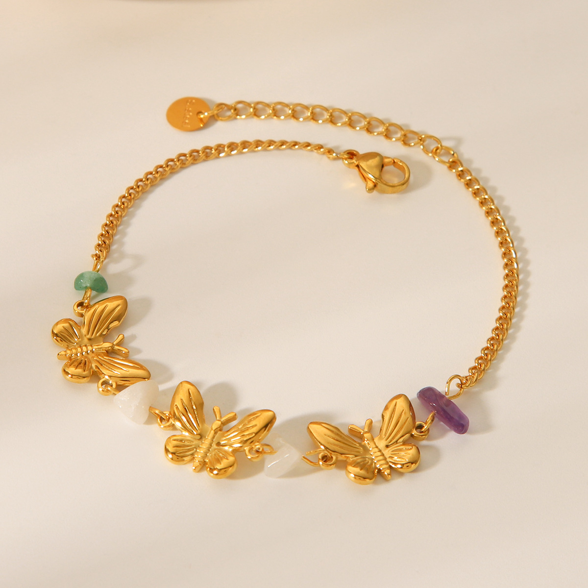 French Fashion Retro 18k Gold Stainless Steel Bracelet, Natural Stone Butterfly Bracelet, Women's Light Luxury Temperament Bracelet