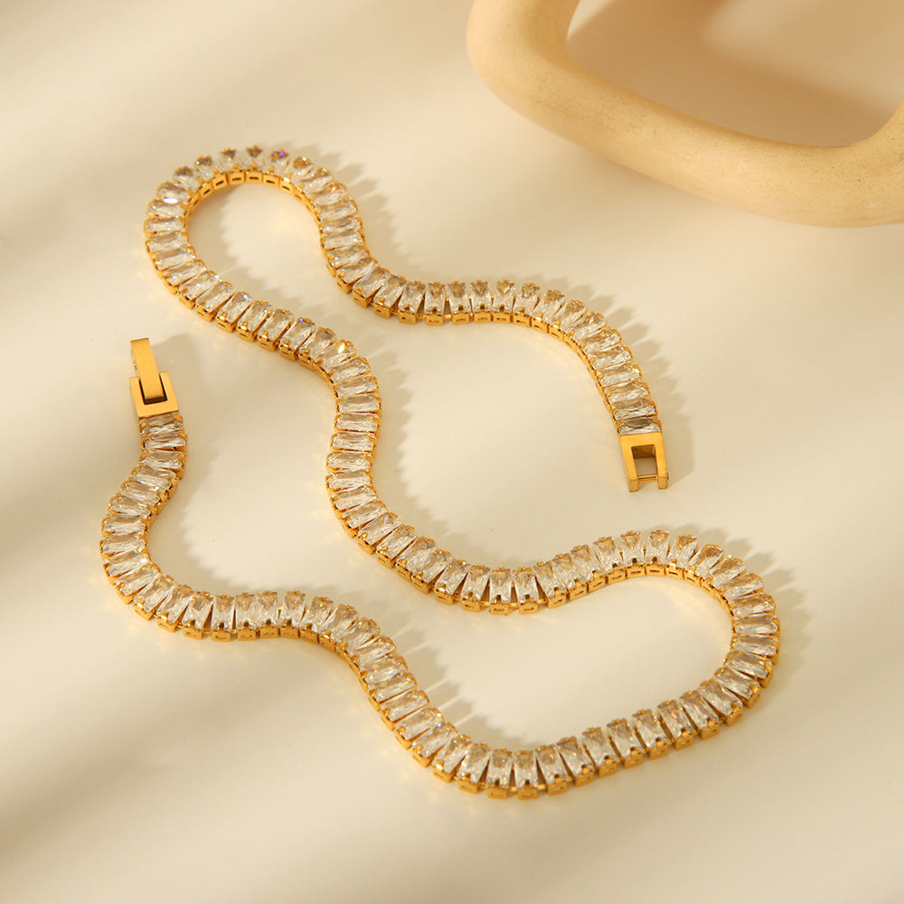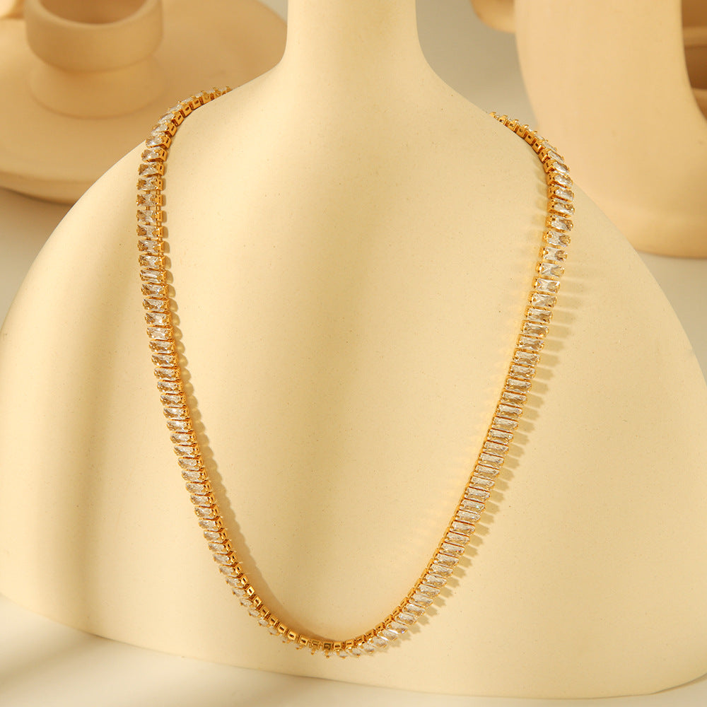 French Light Luxury Niche Jewelry Full Diamond Zircon Necklace Necklace Titanium Steel Fashion Versatile Necklace Women's