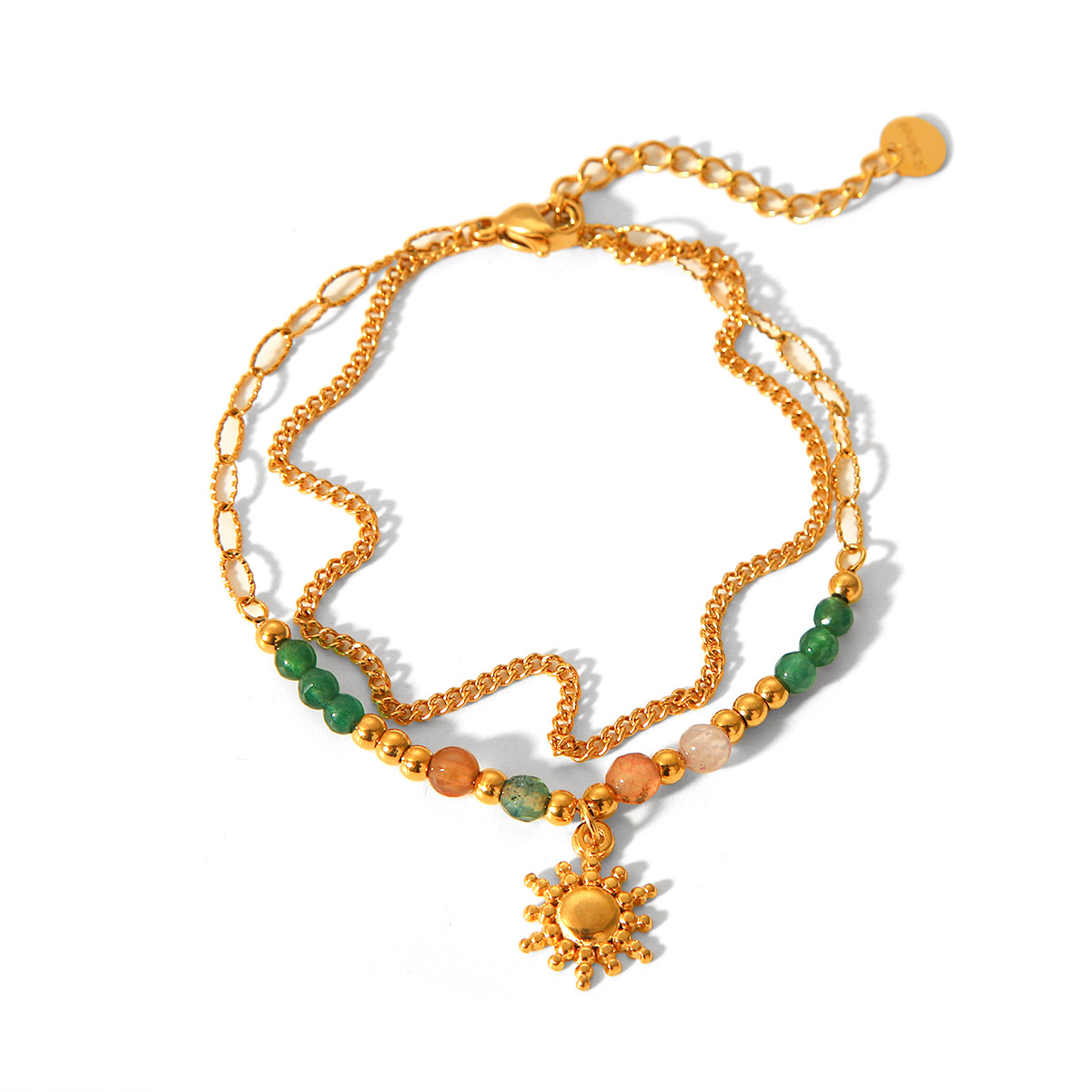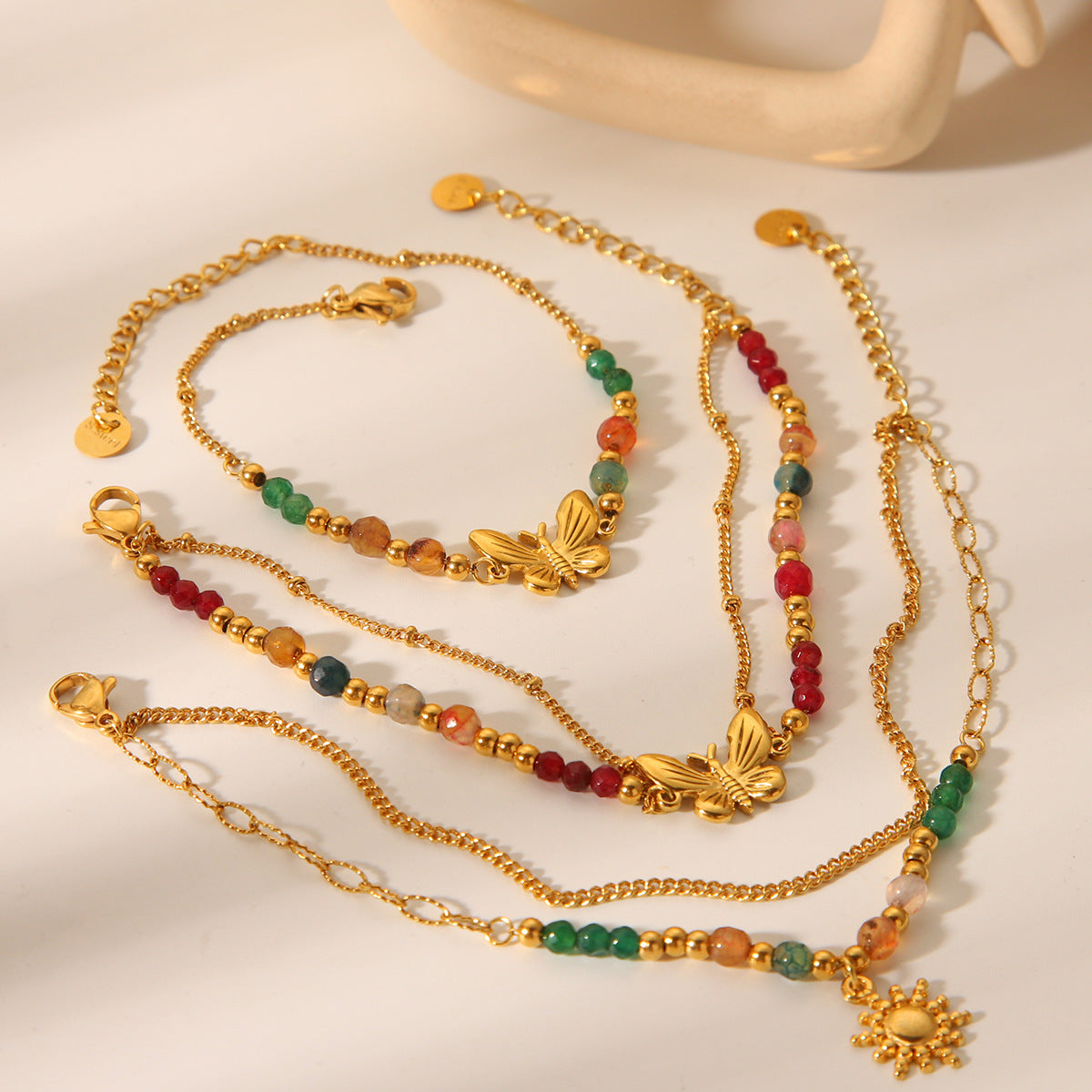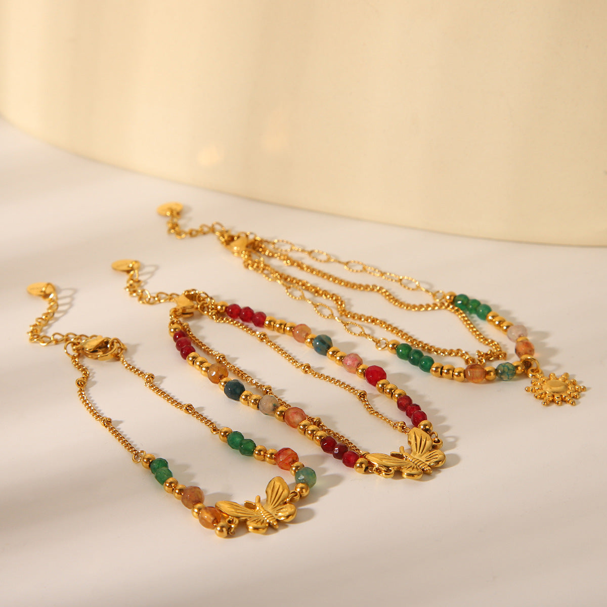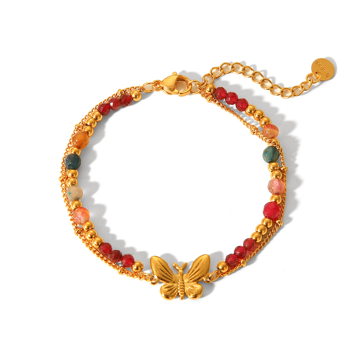 French Retro Natural Stone Stainless Steel Chain Butterfly Bracelet with Feminine Temperament, Versatile Titanium Steel Bracelet, High-end Touch Bracelet