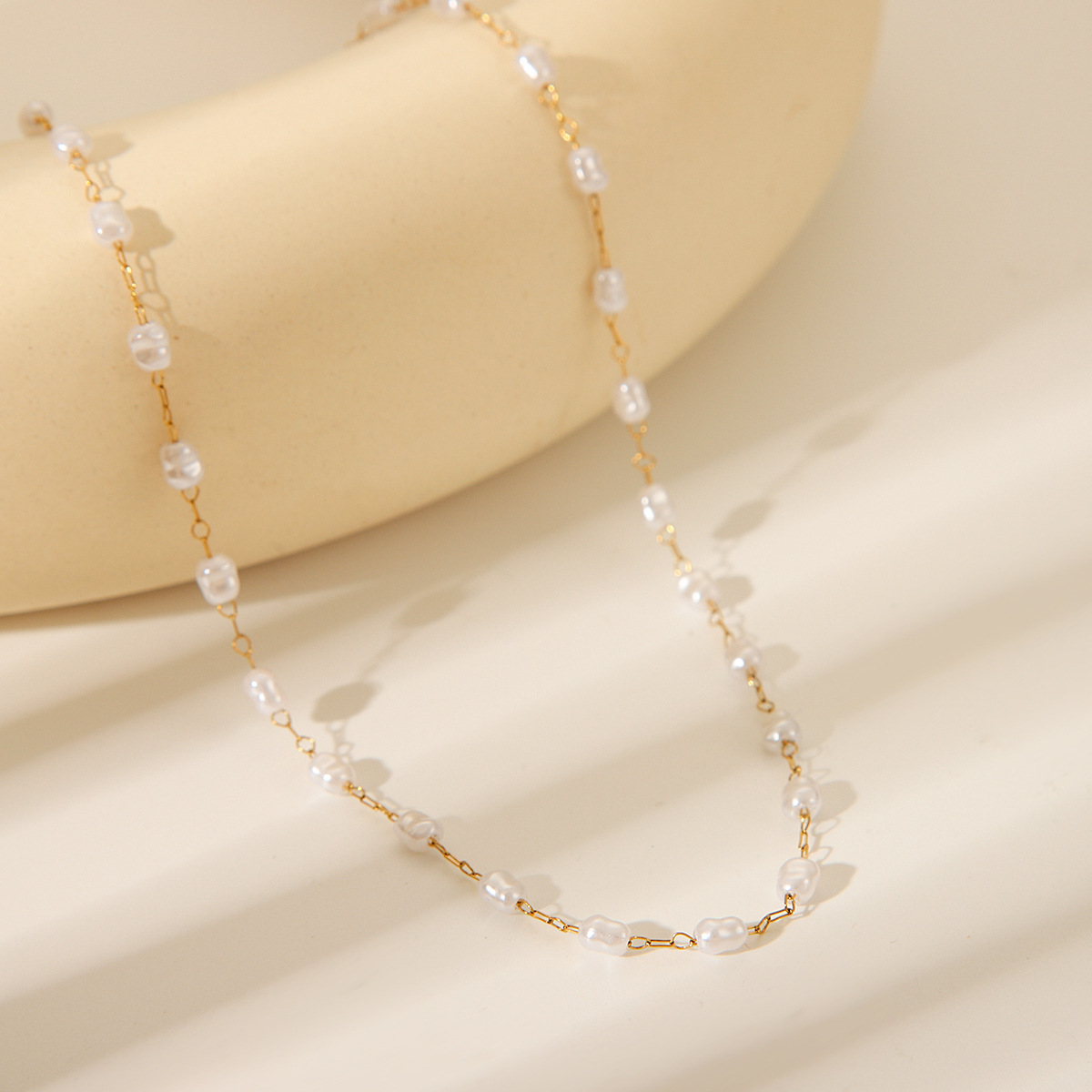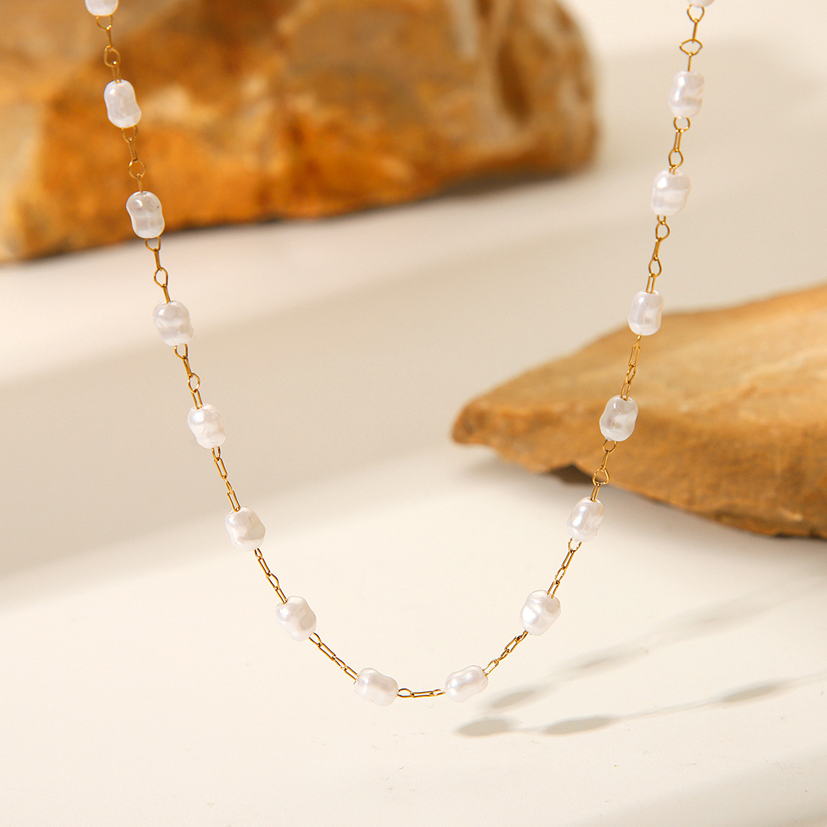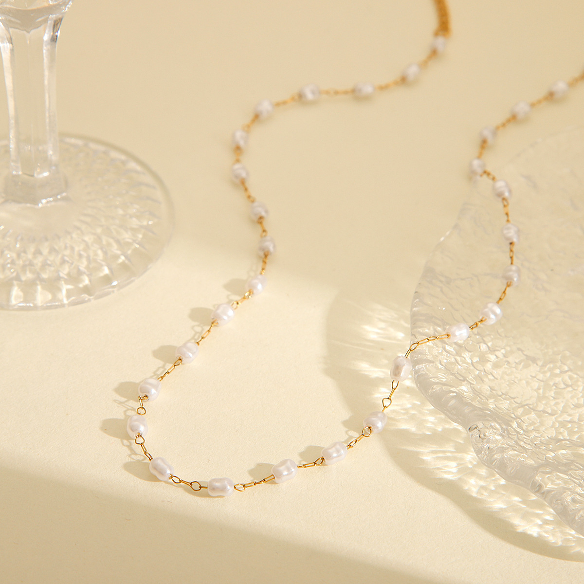 French retro palace style 18K gold-plated stainless steel pearl necklace for women, light luxury temperament, titanium steel, non-fading necklace