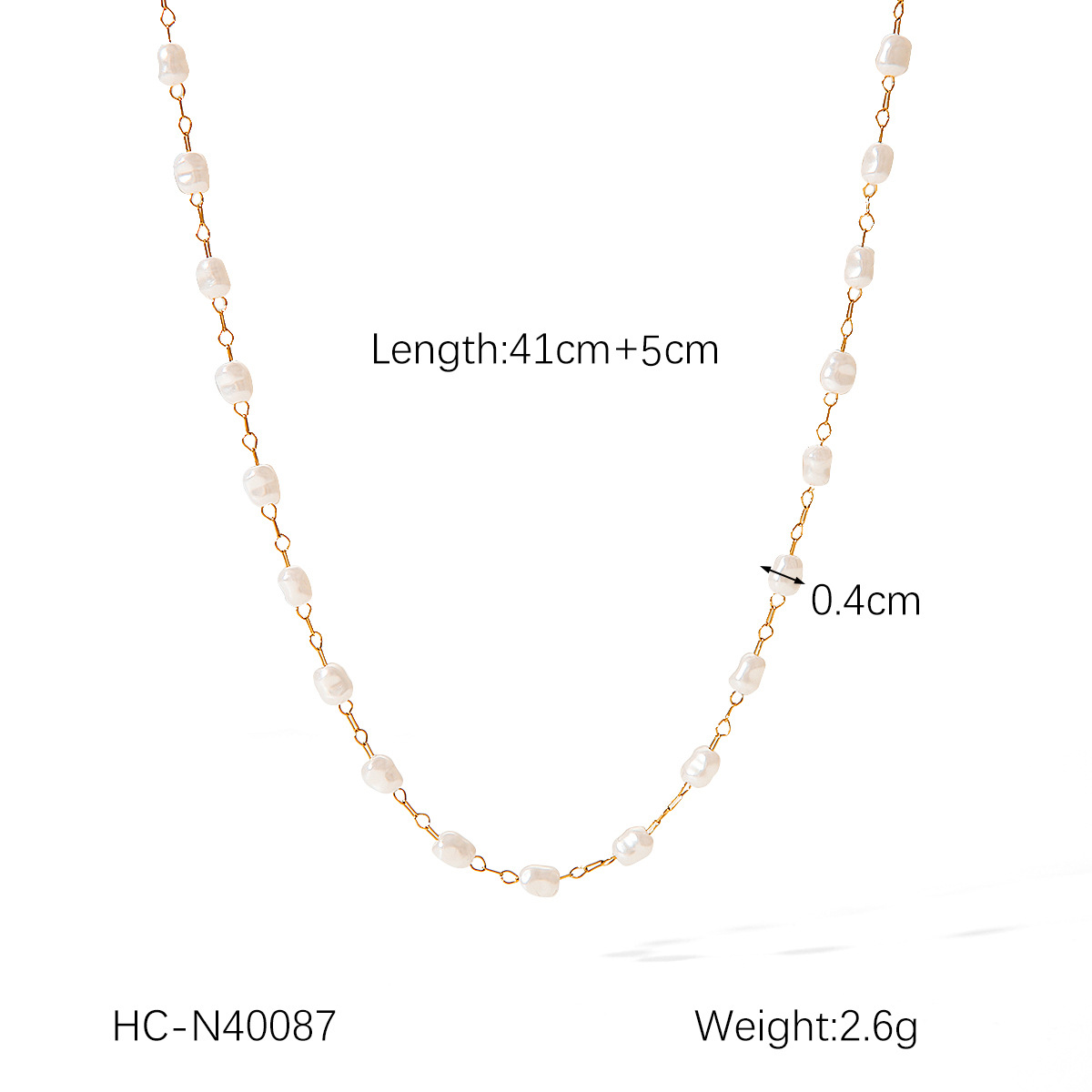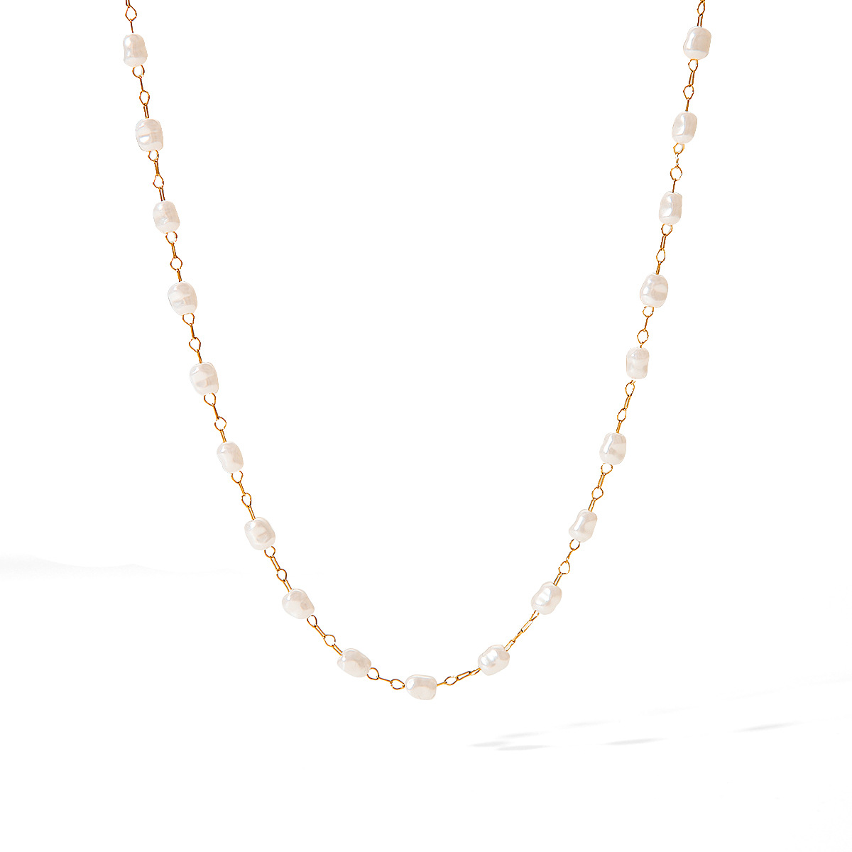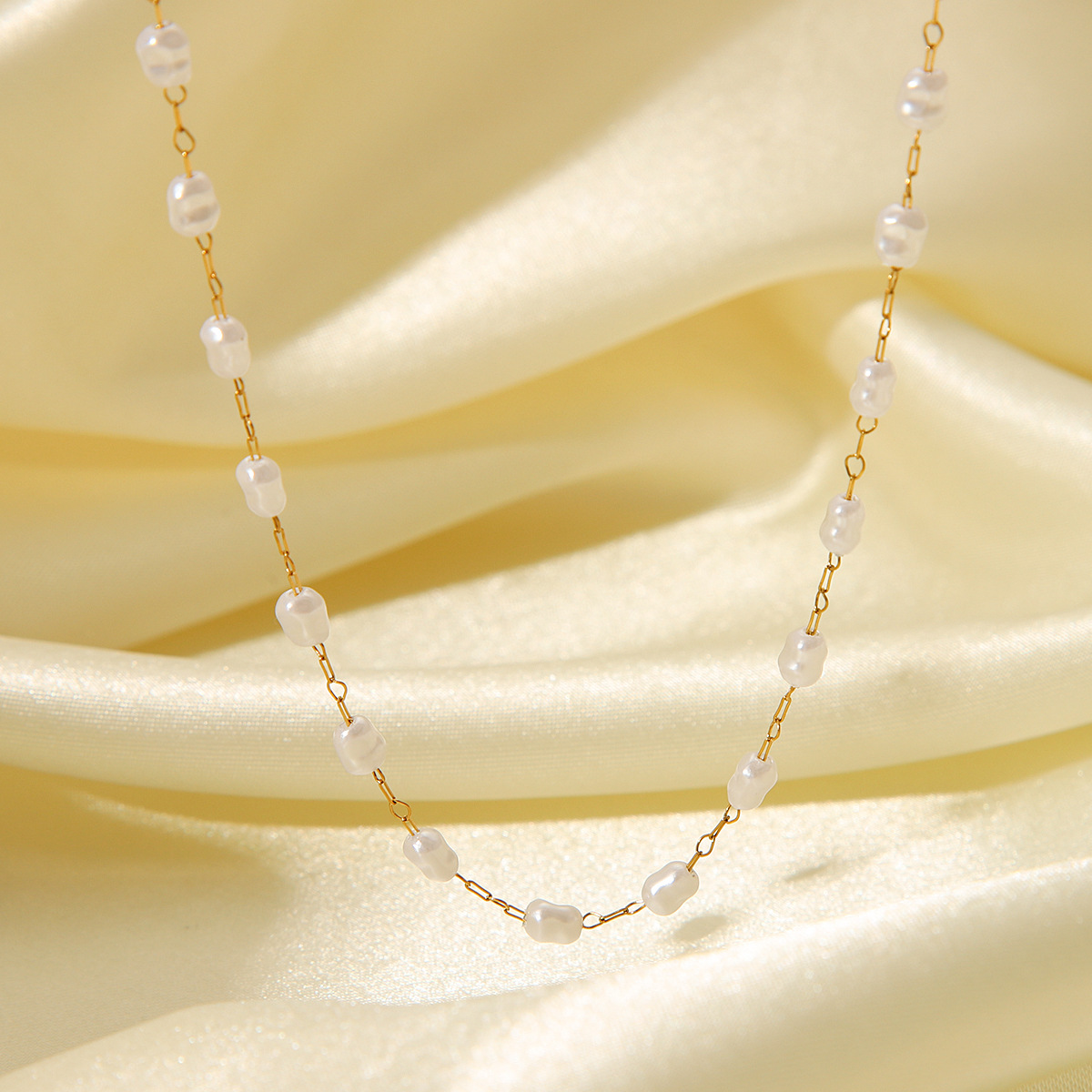 French retro palace style 18K gold-plated stainless steel pearl necklace for women, light luxury temperament, titanium steel, non-fading necklace