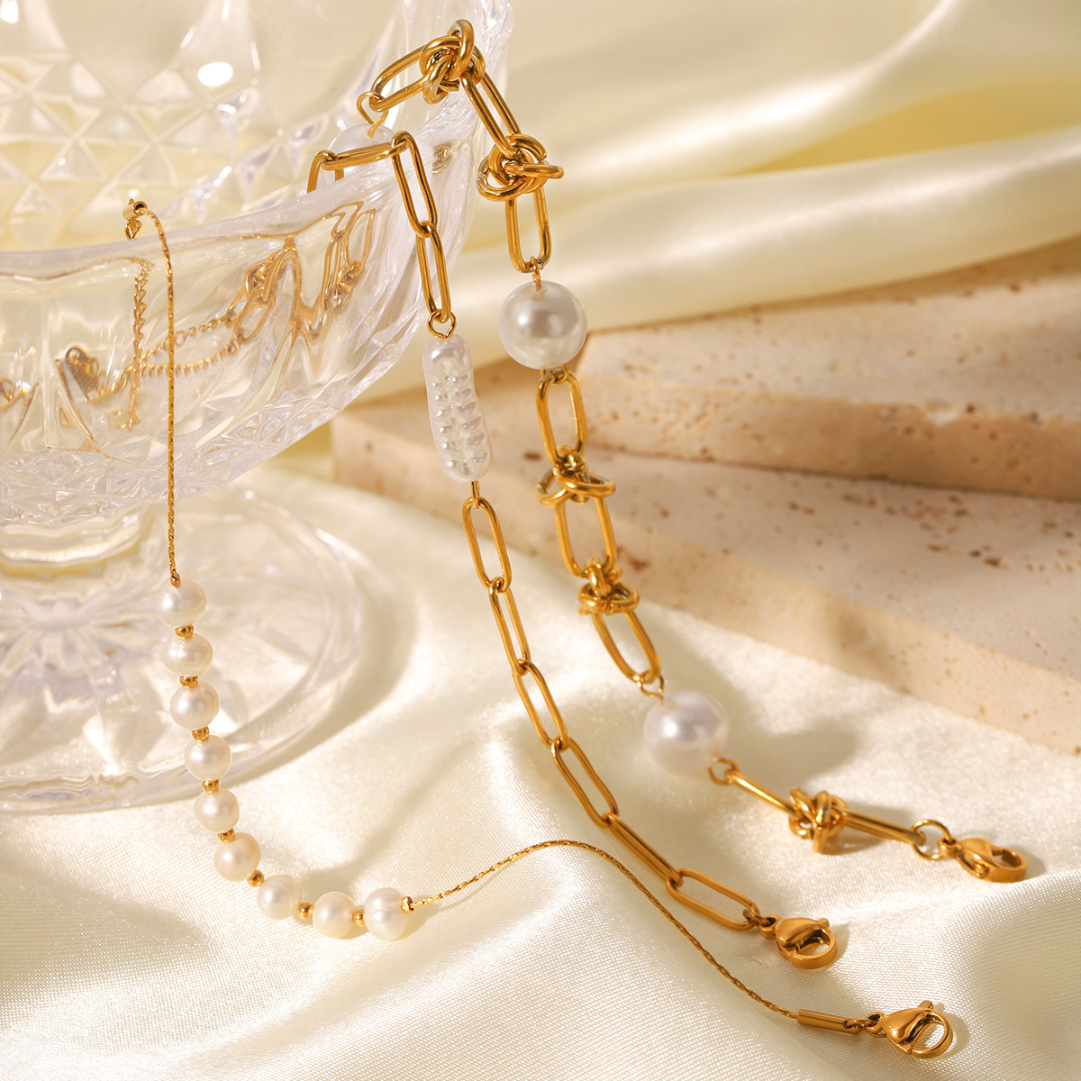 French-style Light Luxury Vintage Stainless Steel Chain Pearl Bracelet for Women, Elegant and High-end Beaded Freshwater Pearl Jewelry