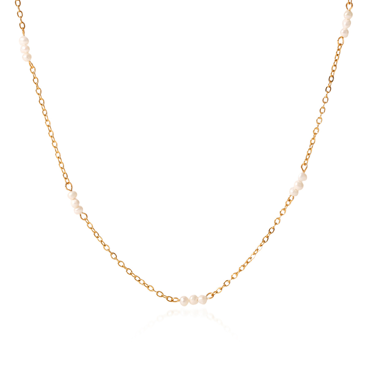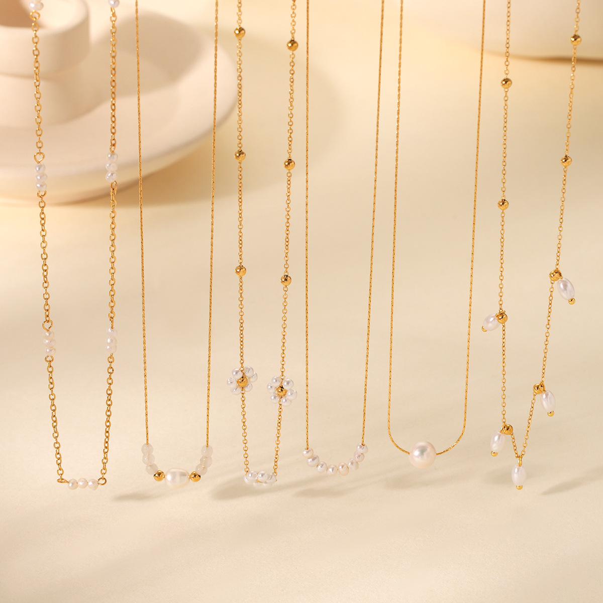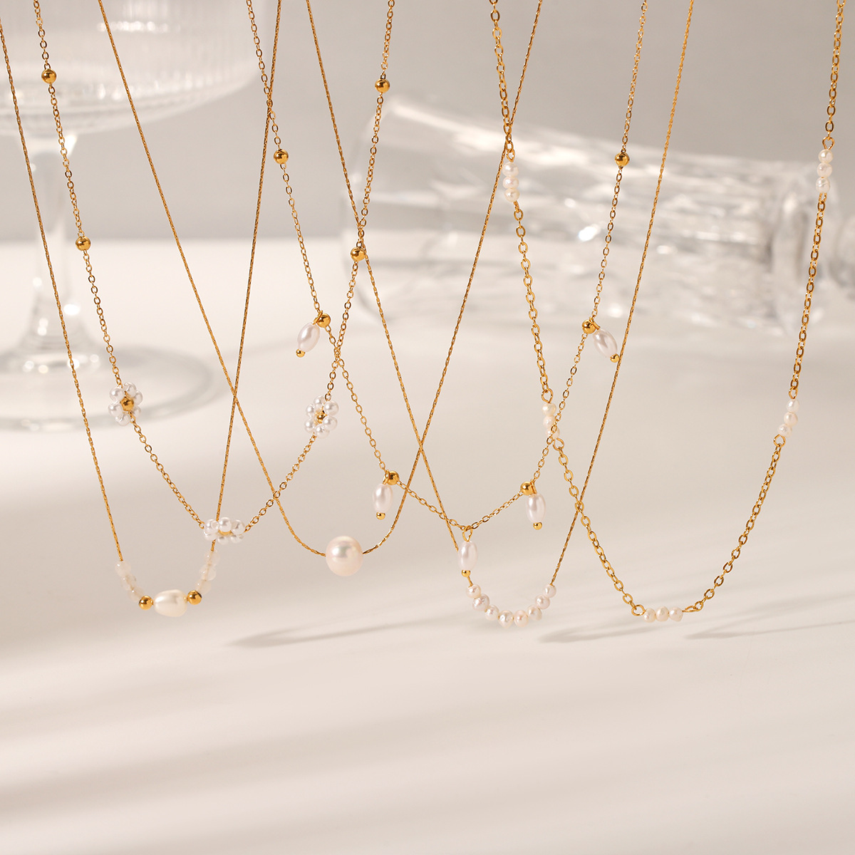 French Vintage Freshwater Pearl Necklace Women's Light Luxury Temperament Beaded Stainless Steel Clavicle Chain Non-fading Titanium Steel Necklace