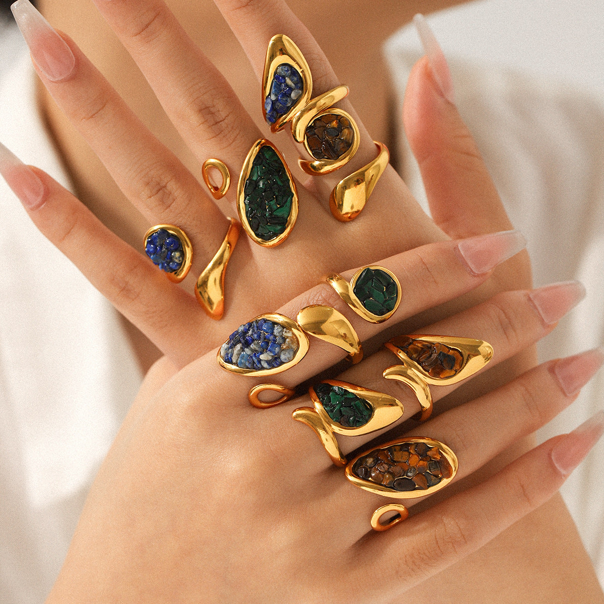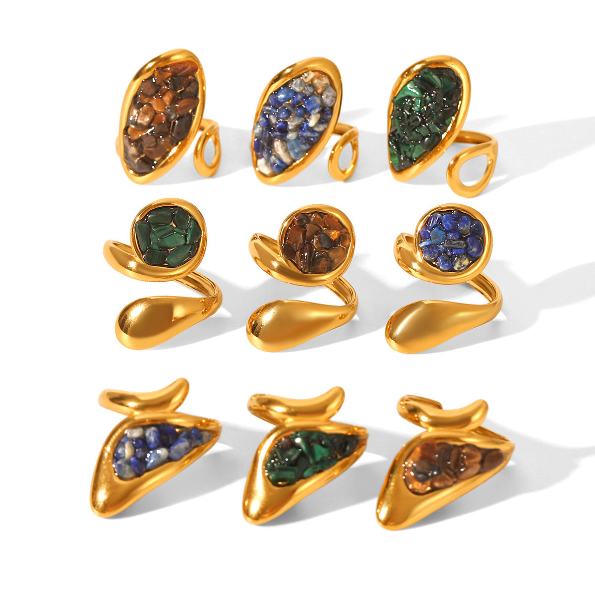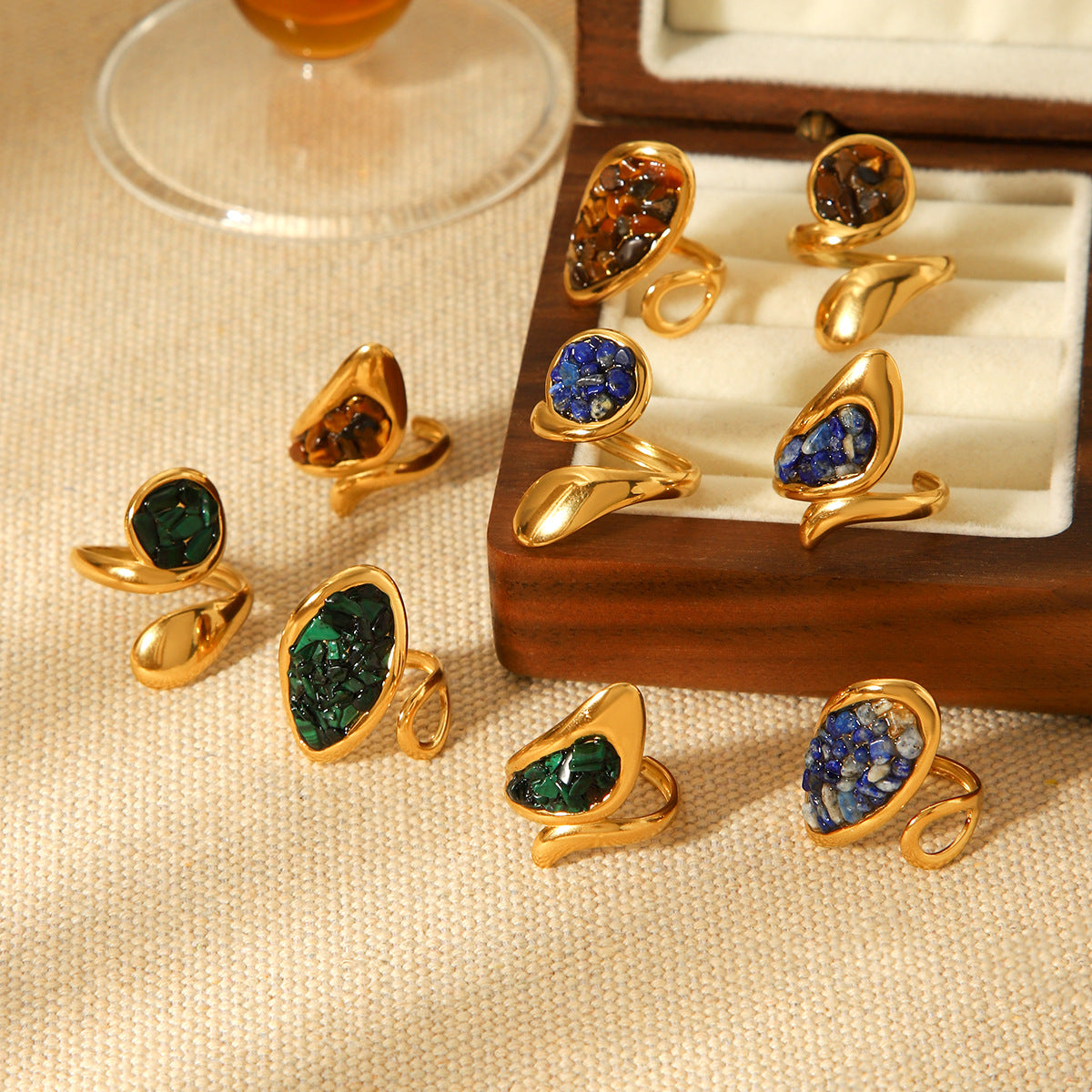 French vintage natural stone stainless steel ring for women, non-fading jewelry, versatile niche design, titanium steel open ring