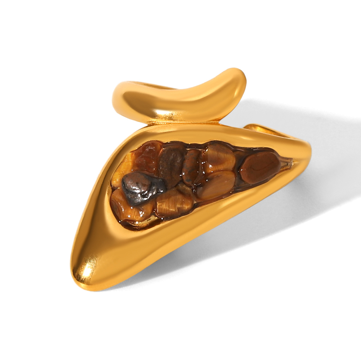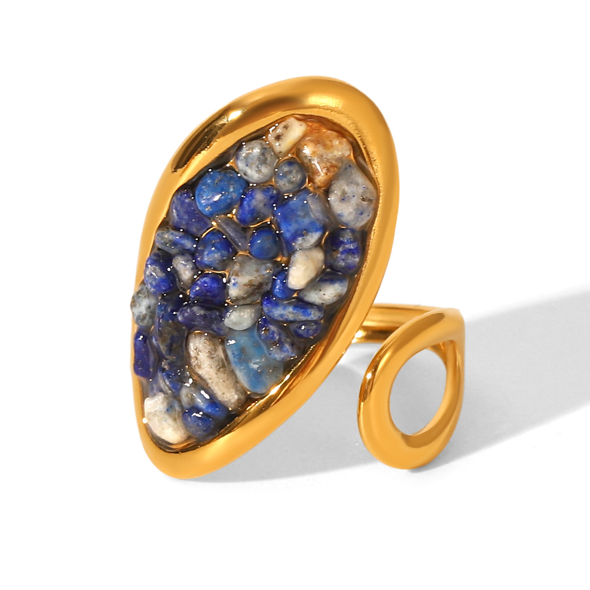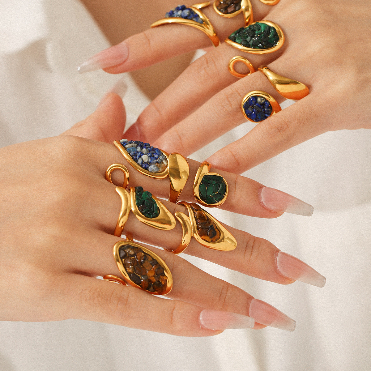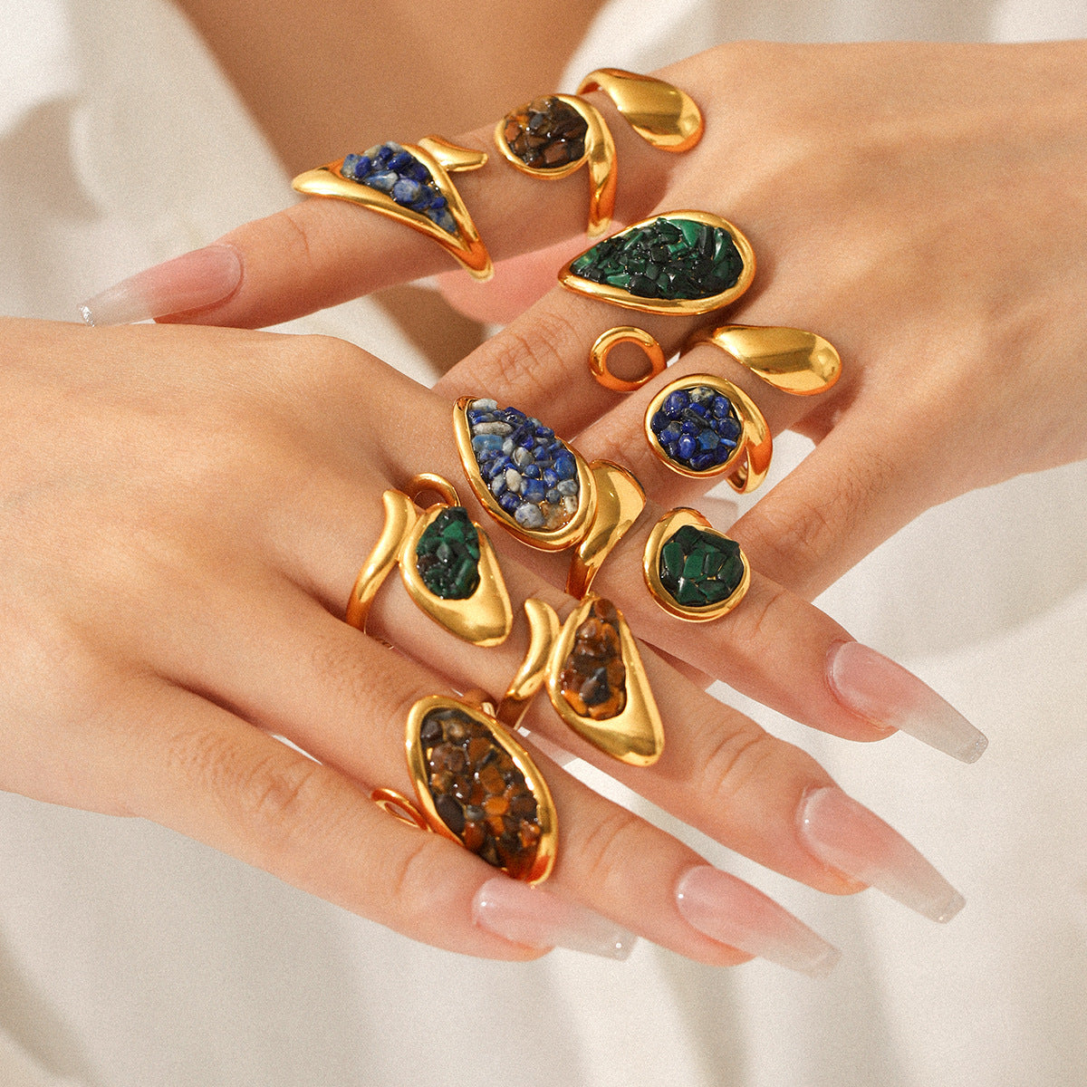 French vintage natural stone stainless steel ring for women, non-fading jewelry, versatile niche design, titanium steel open ring