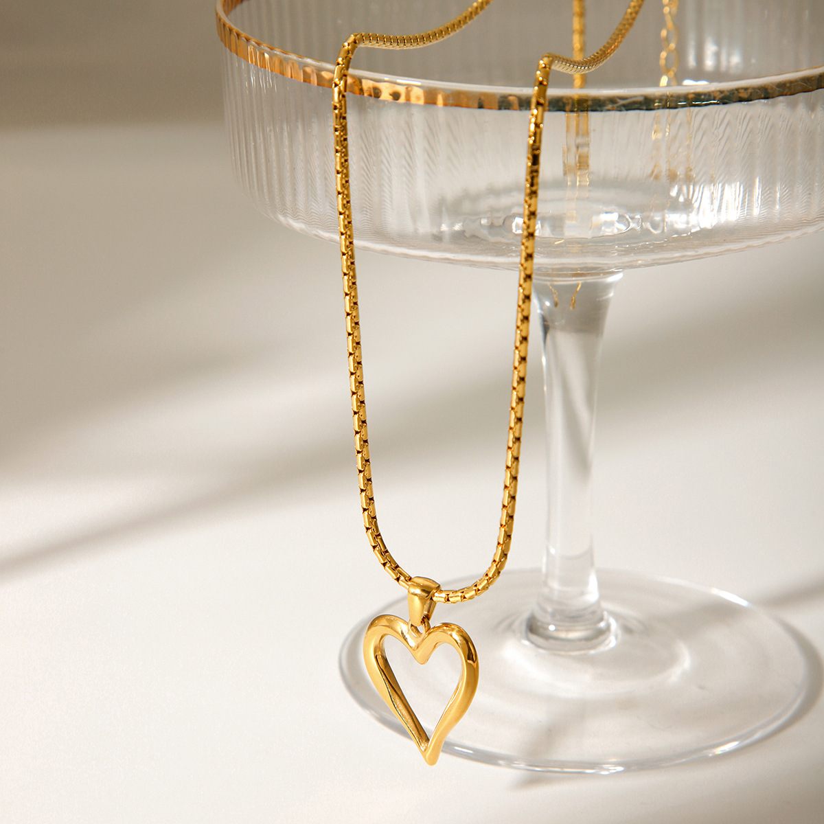 Hollow-out Heart-shaped Pendant Stainless Steel Necklace for Women, Fashionable and Versatile Titanium Steel Necklace Jewelry, Does Not Fade