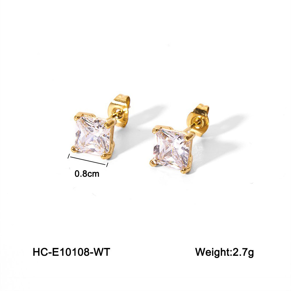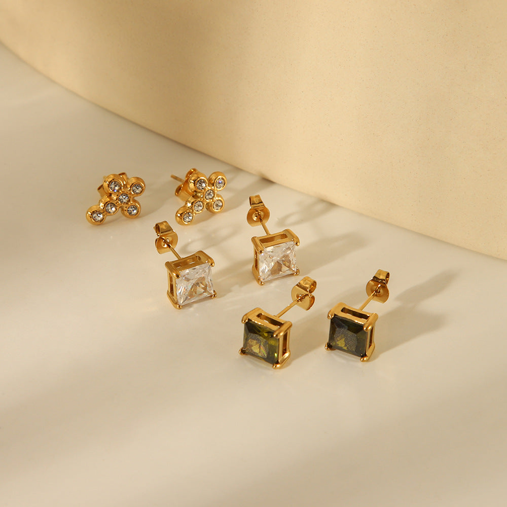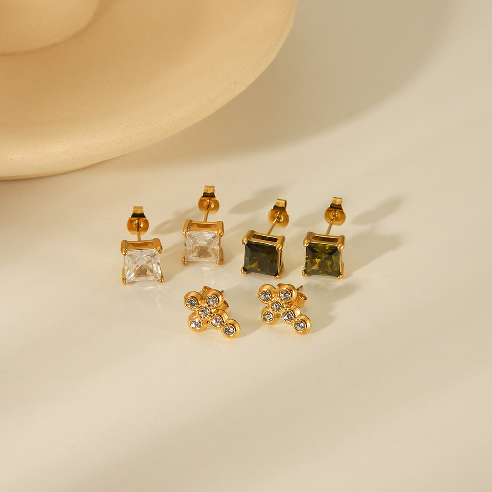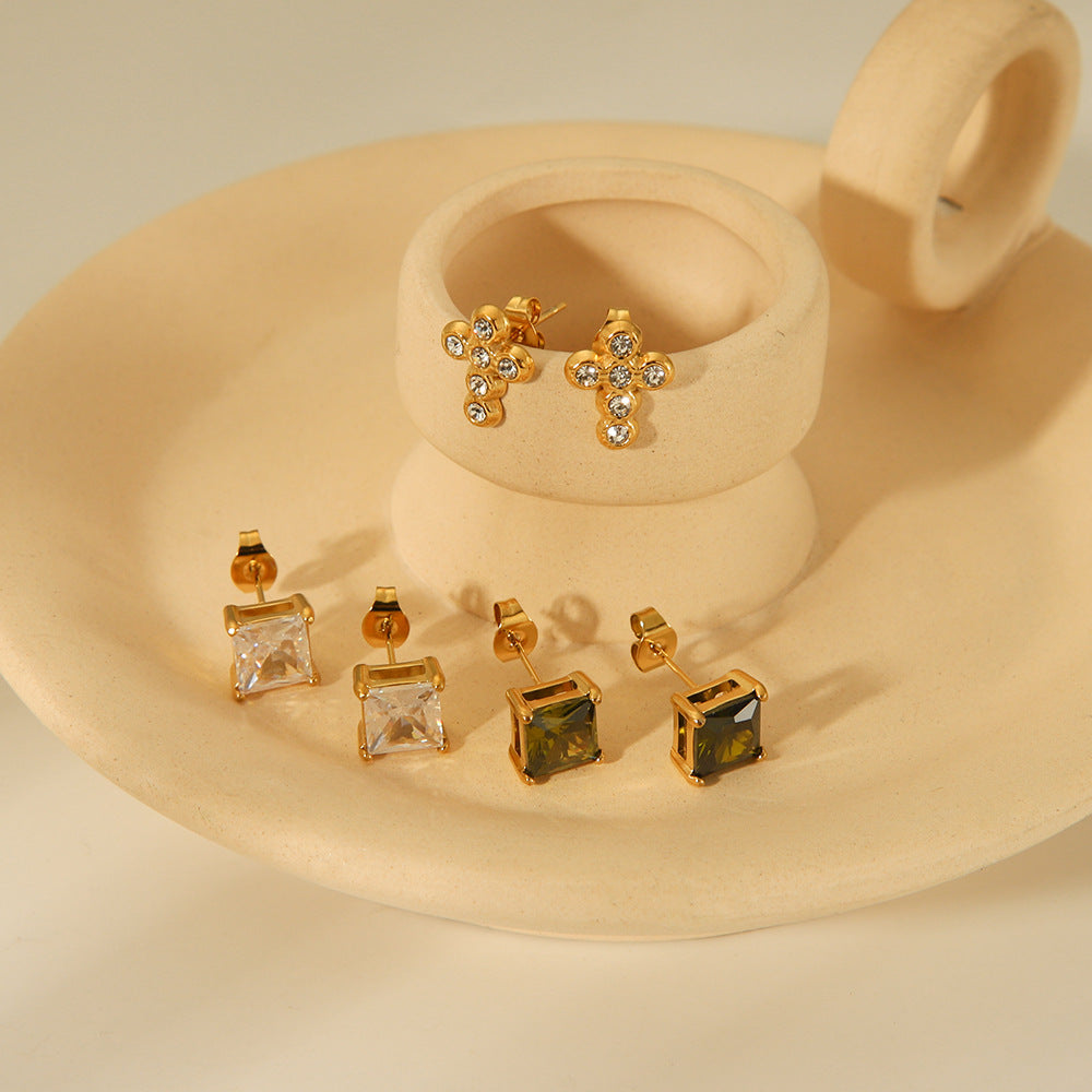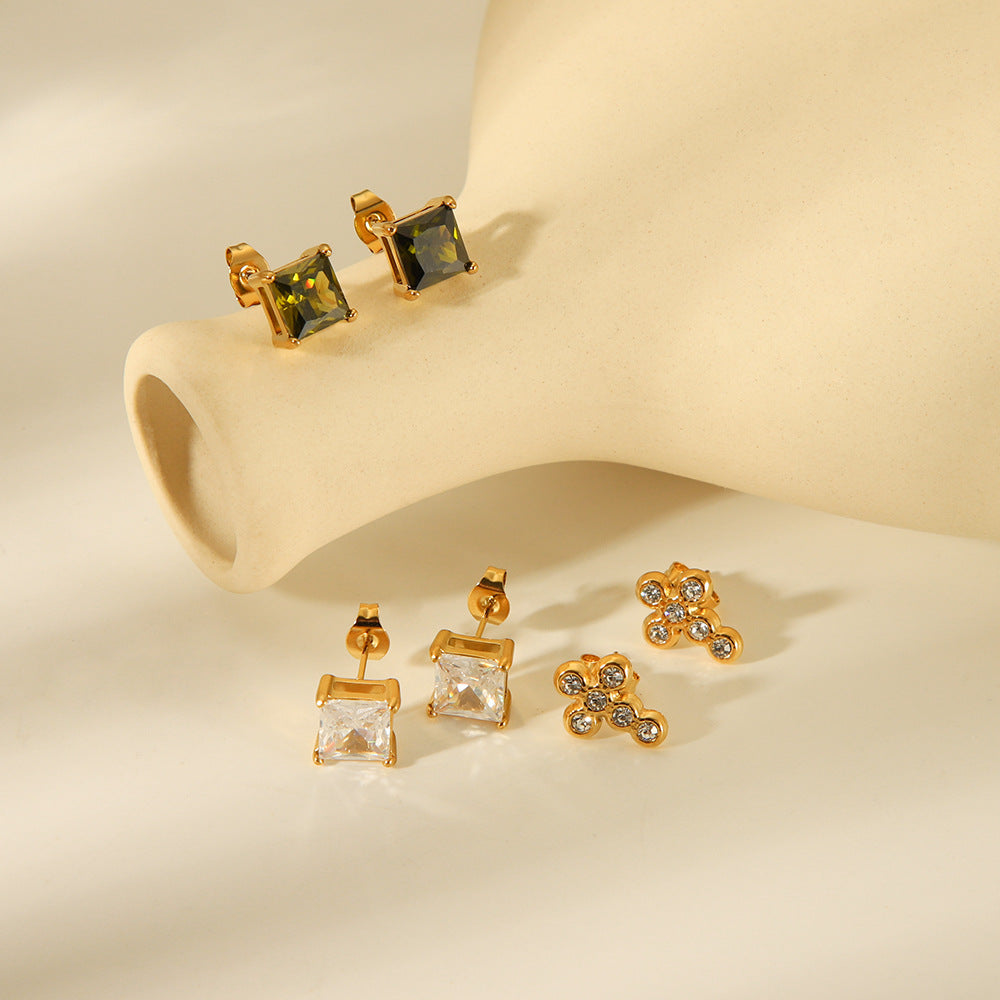 INS Fashionable and Minimalist Titanium Steel Earrings, Vacuum Plated Stainless Steel, White/green Square Zircon Earrings, Jewelry for Women