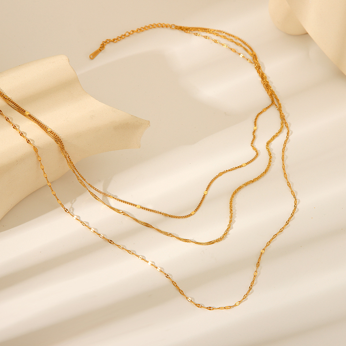 Ins Influencer Necklace, 18K Gold Stainless Steel Three-layer Necklace, Cross-border Fashion, Versatile, Titanium Steel, Non-fading Necklace