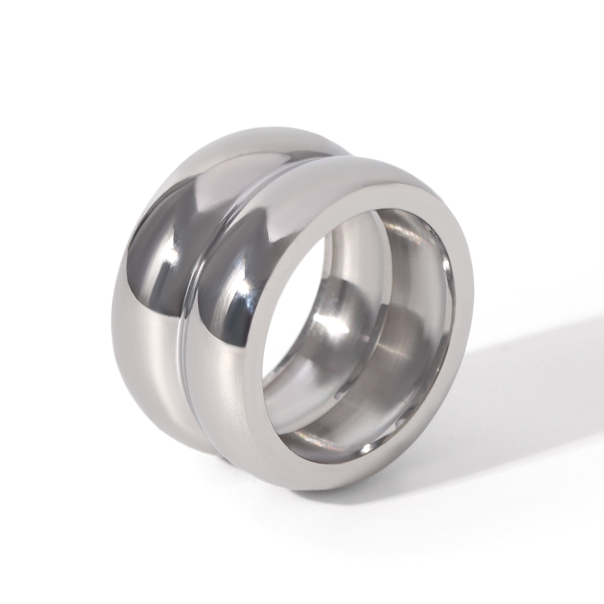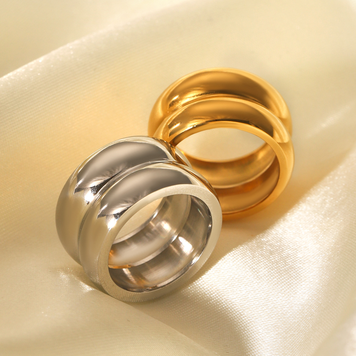 INS Style European and American 18K Gold-plated Double-layer Stainless Steel Ring, Niche and High-end, Non-fading, Finger Ring, Titanium Steel Jewelry