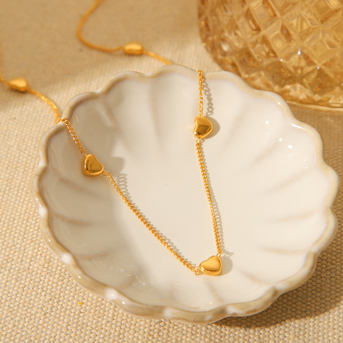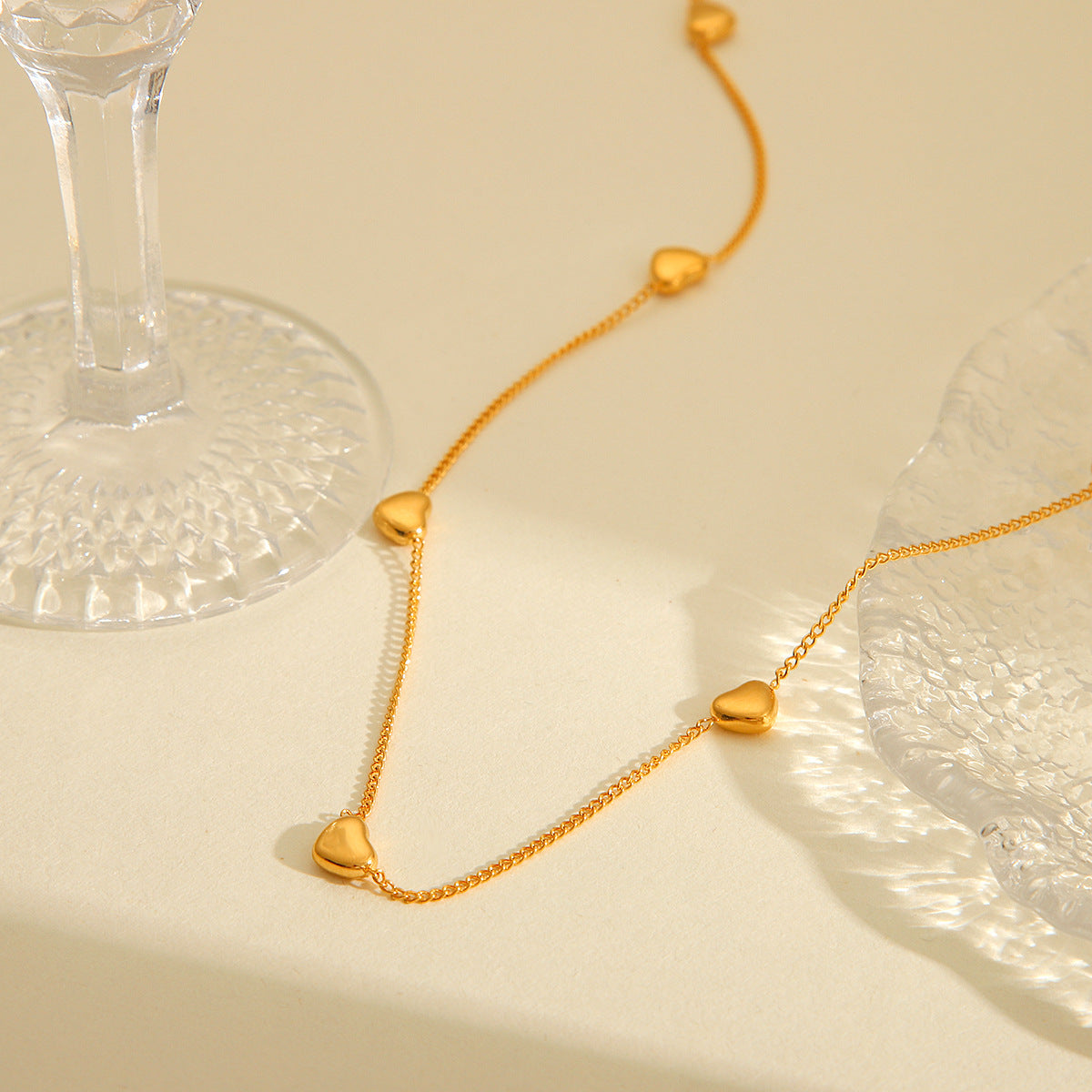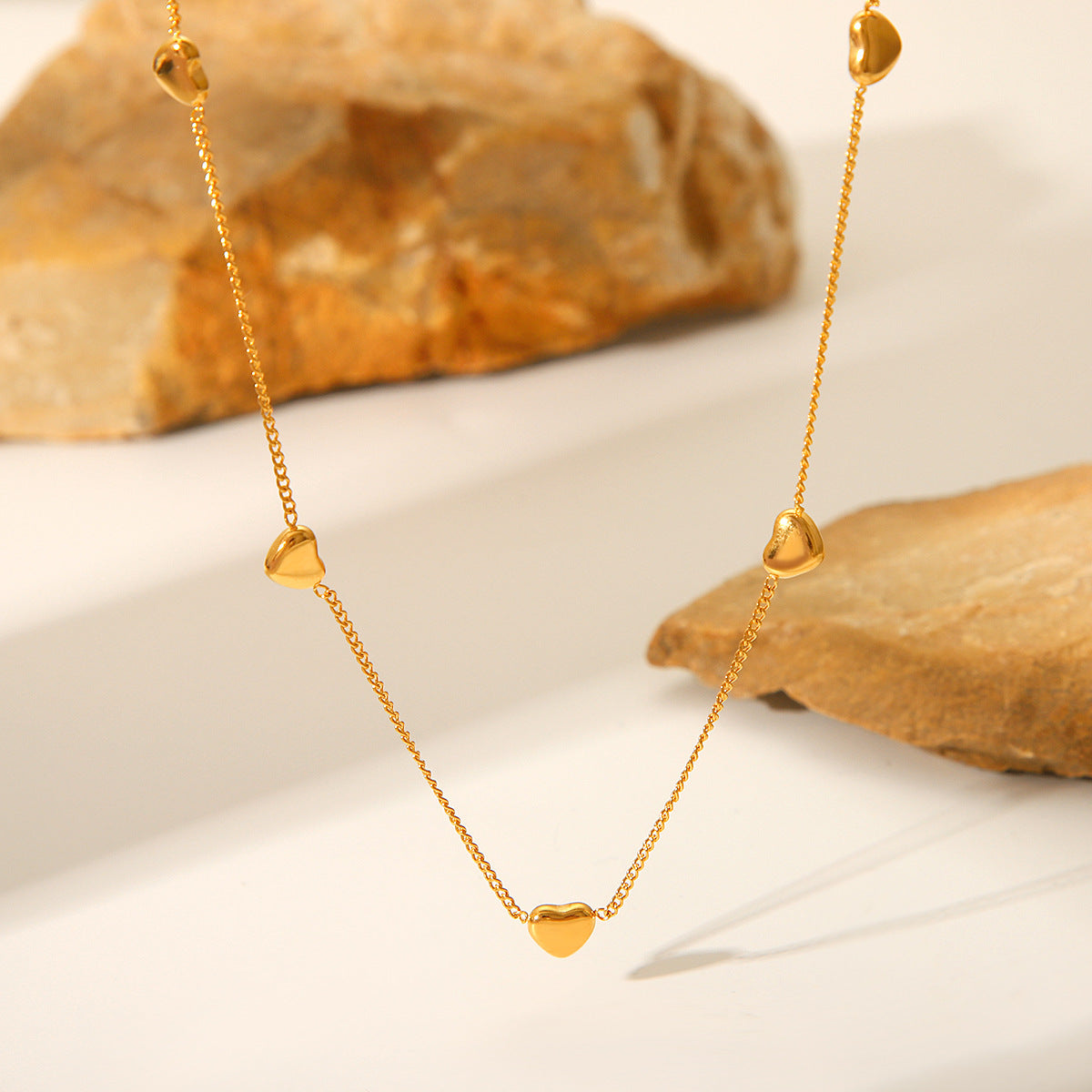 INS-style Fashionable and Personalized 18K Gold Stainless Steel Heart Necklace for Women, Hip-hop Trendy Titanium Steel Necklace, Collarbone Chain